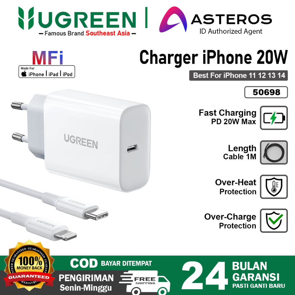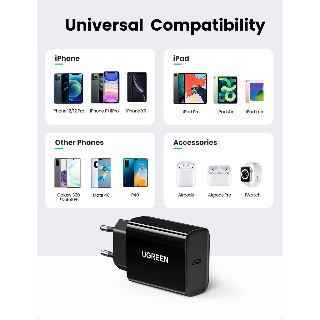 UGREEN Charger For MFI PD Type C Fast Charging 20w 50698 50799