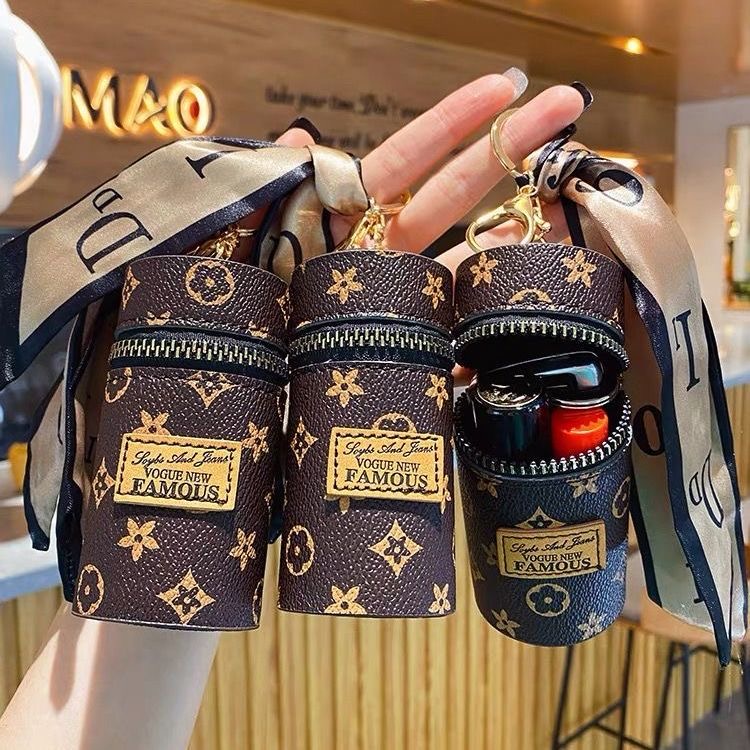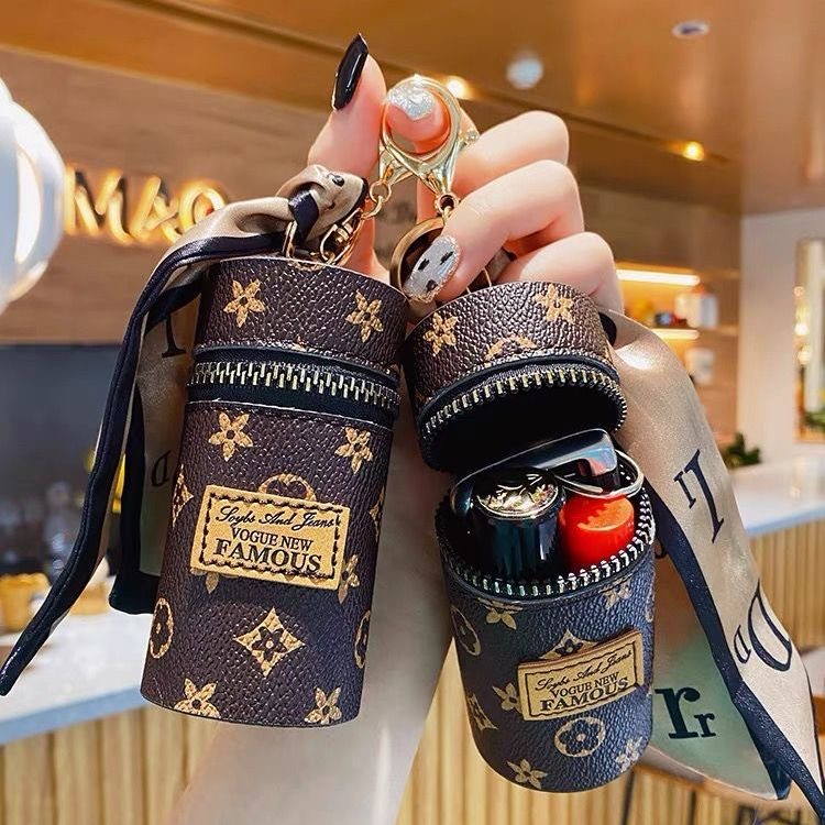 Ember kulit lipstik tas gantungan kunci mobil wanita gantungan kunci tas liontin gantungan kunci