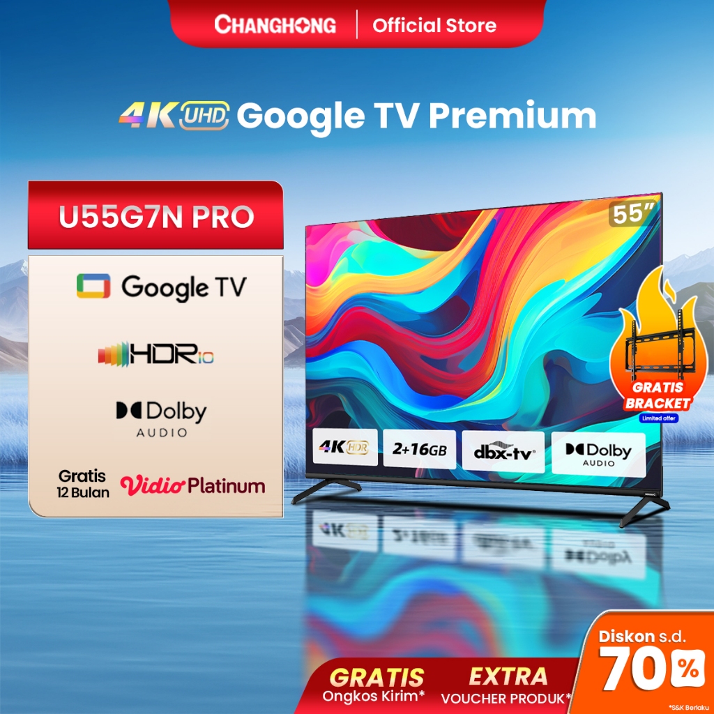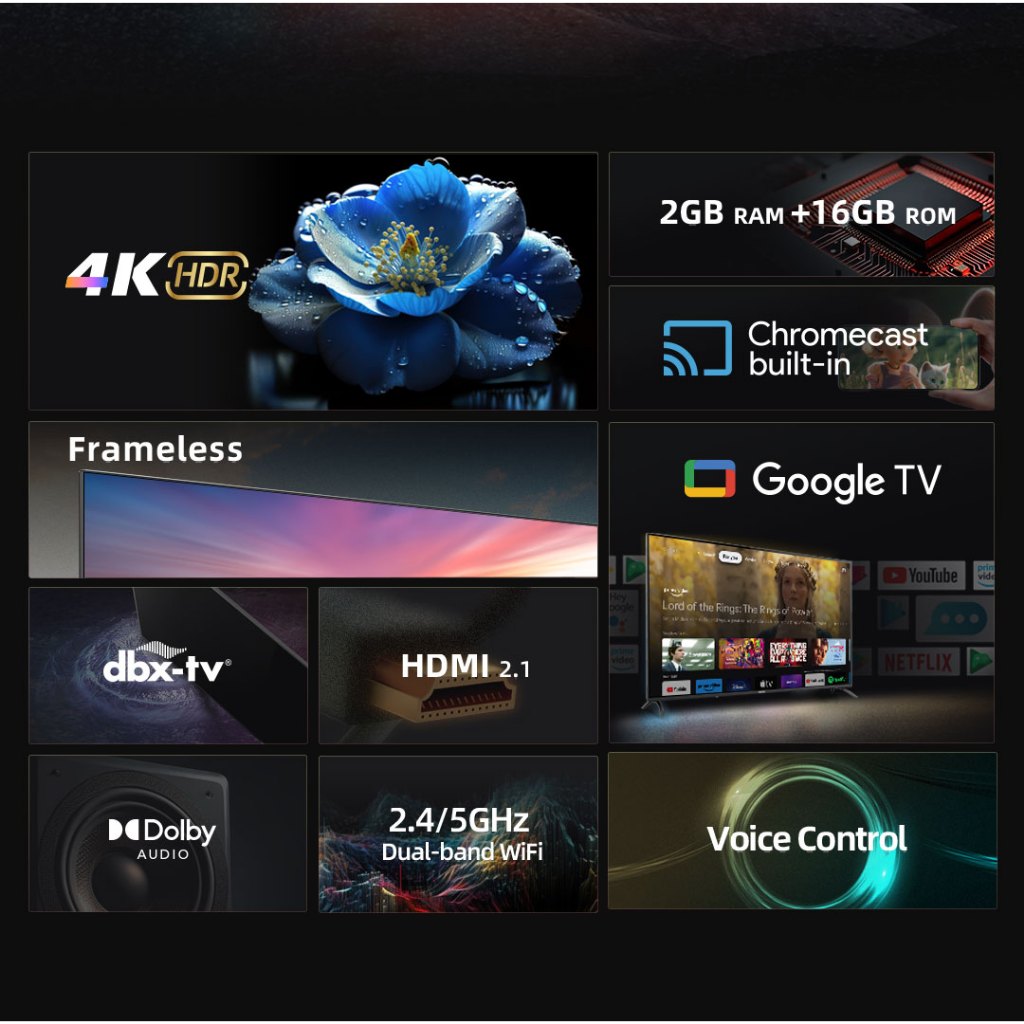 【Google TV】Changhong 55 inch 4K UHD-HDR10 DBX Dolby Audio Google Assistant Netflix Youtube Digital TV (U55G7N Pro)