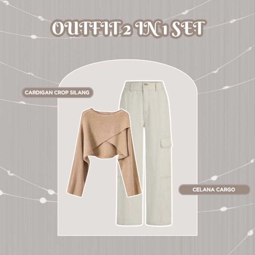 Setelan wanita kekinian hijab|outfit konser(Cardigan crop, Celana cargo, Jilbab bella square)- LU060 Outfit Wanita