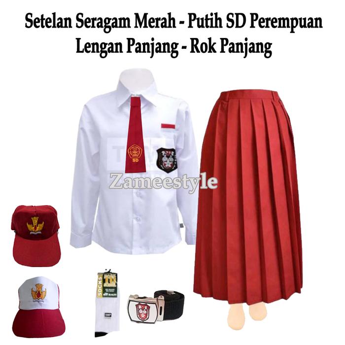 Paket Lengkap Setelan Seragam Anak Sekolah Merah Putih Perempuan Baju Panjang Dan Rok Panjang Kelas 1-6 Sd - Hanya Baju+