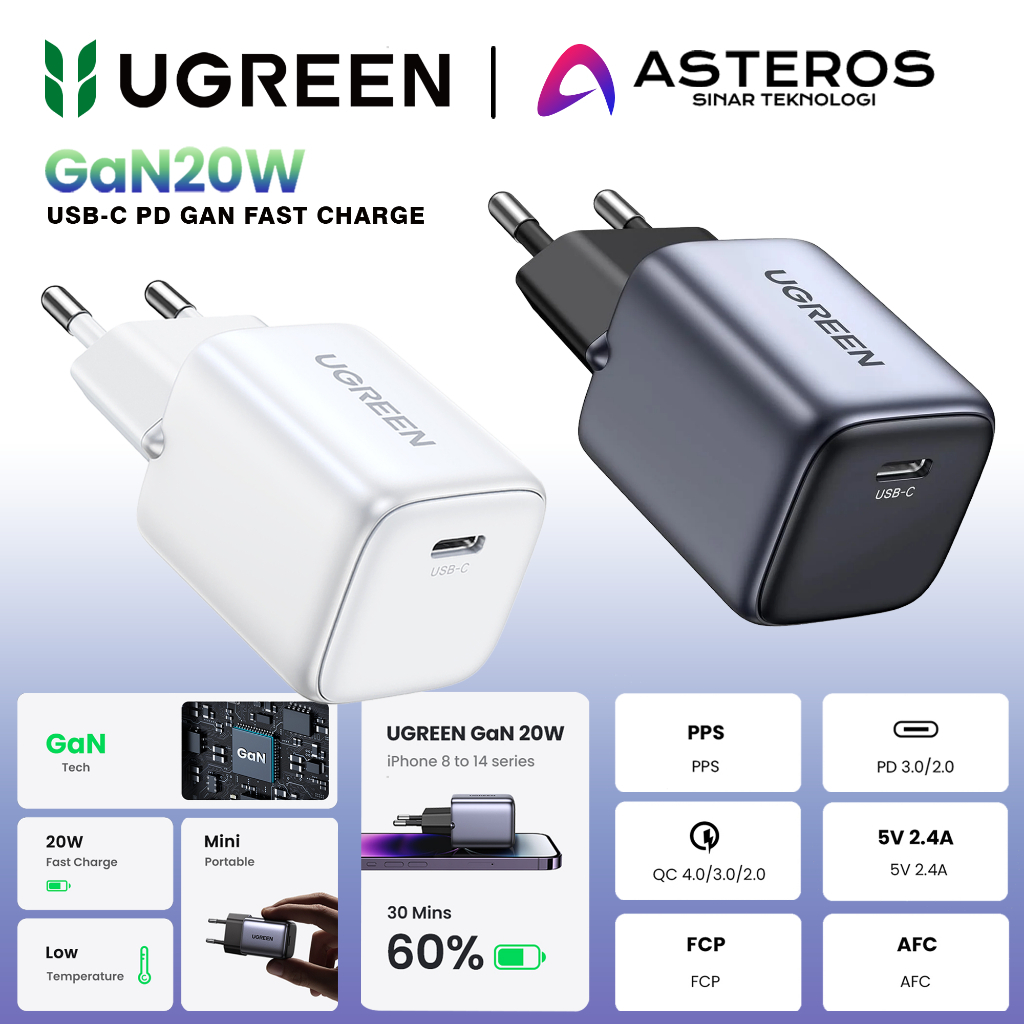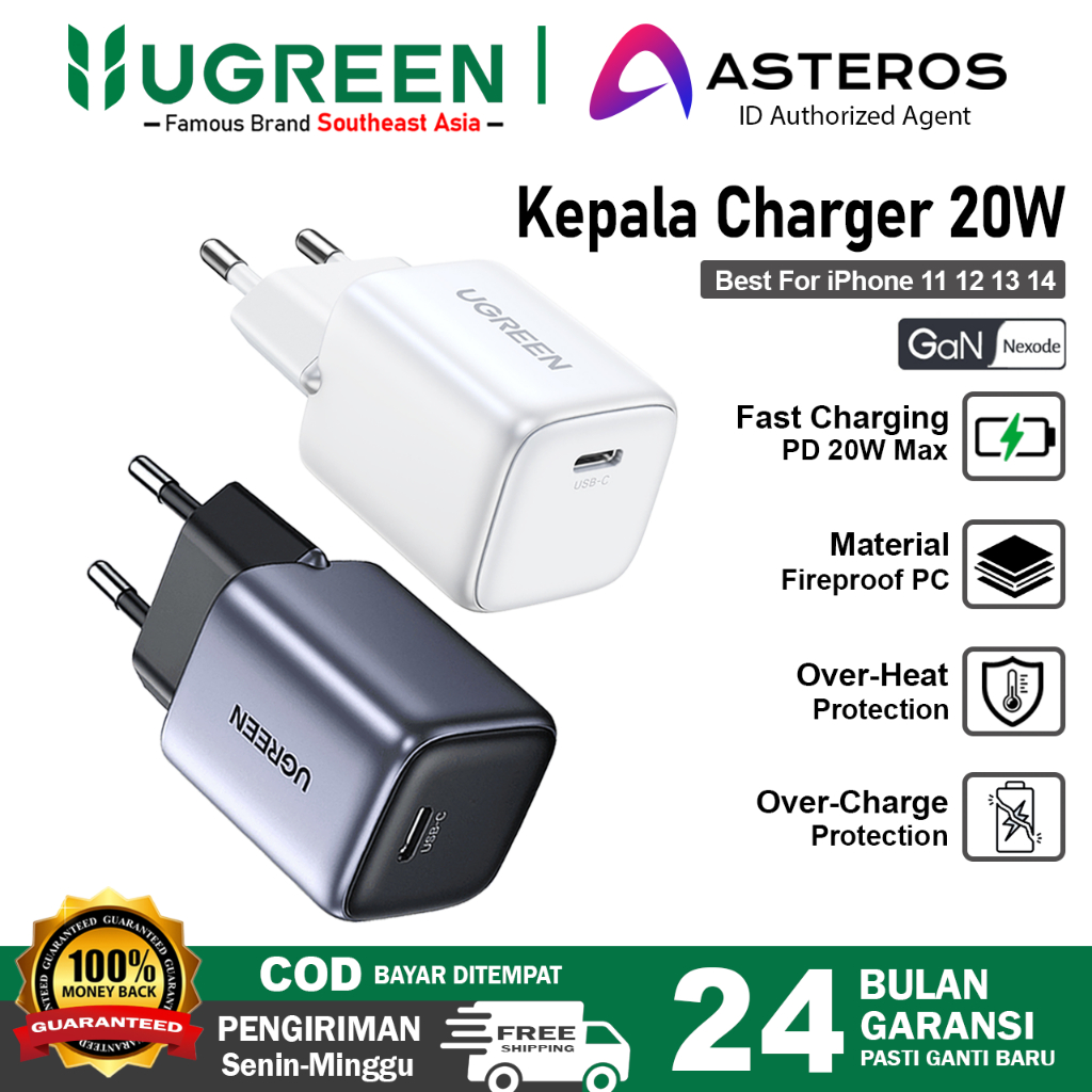 UGREEN Kepala Charger GAN for 11 12 13 14 Pro Fast Charging 20W