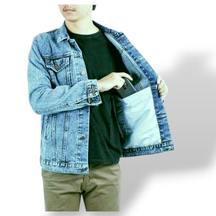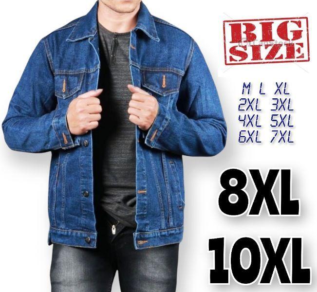 Jaket Jeans Pria Jumbo/Jaket Pria Ukuran Big Size/ Musim Dingin Santai Polos Hitam Sandwash - Garment, Xxs (Extra Kecil)