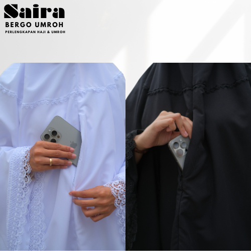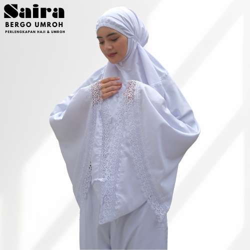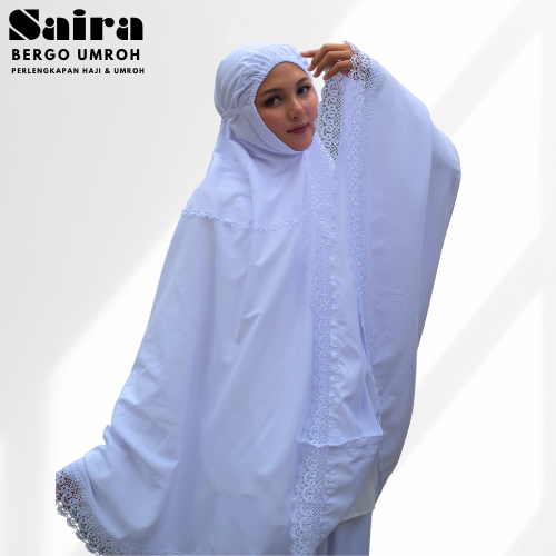 Bergo Umroh Haji Hijab Bersaku Premium Bahan Katun Jumbo Renda Mewah