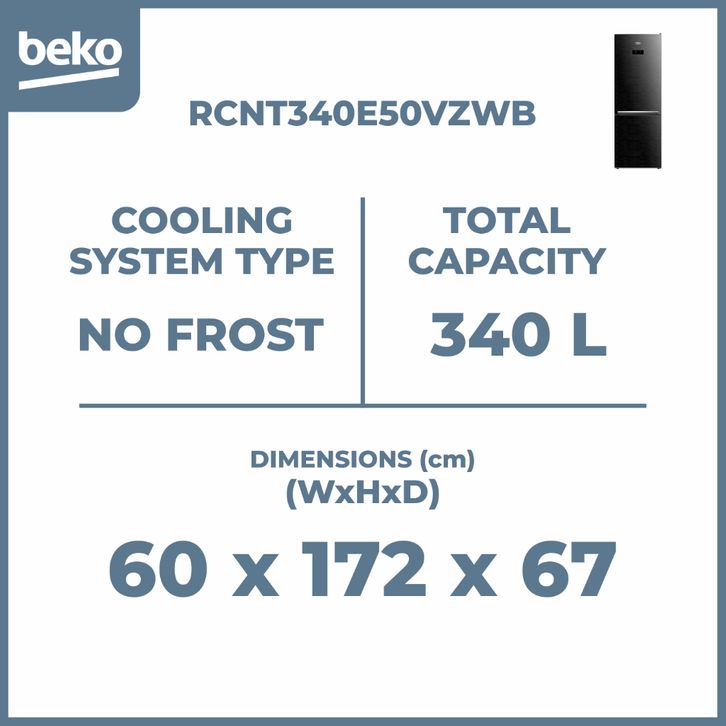 Beko Kulkas 2 Pintu RCNT340E50VZWB - Kapasitas 340liter Inverter Freezer Bawah