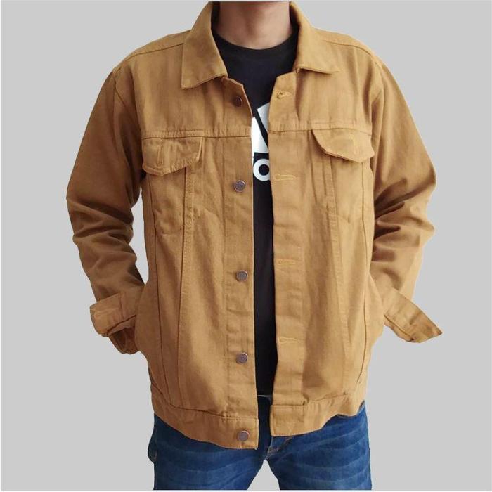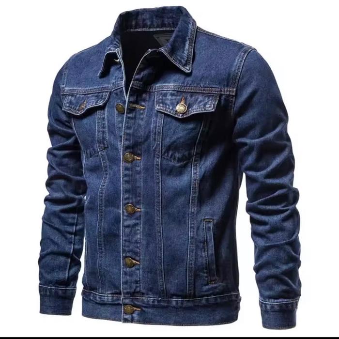 Jaket Jeans Polos Bahan Denim Pria Atasan Fashion Terbaru Terlaris Unisex Santai Casual Keren Distro Cowok - Navy Pol