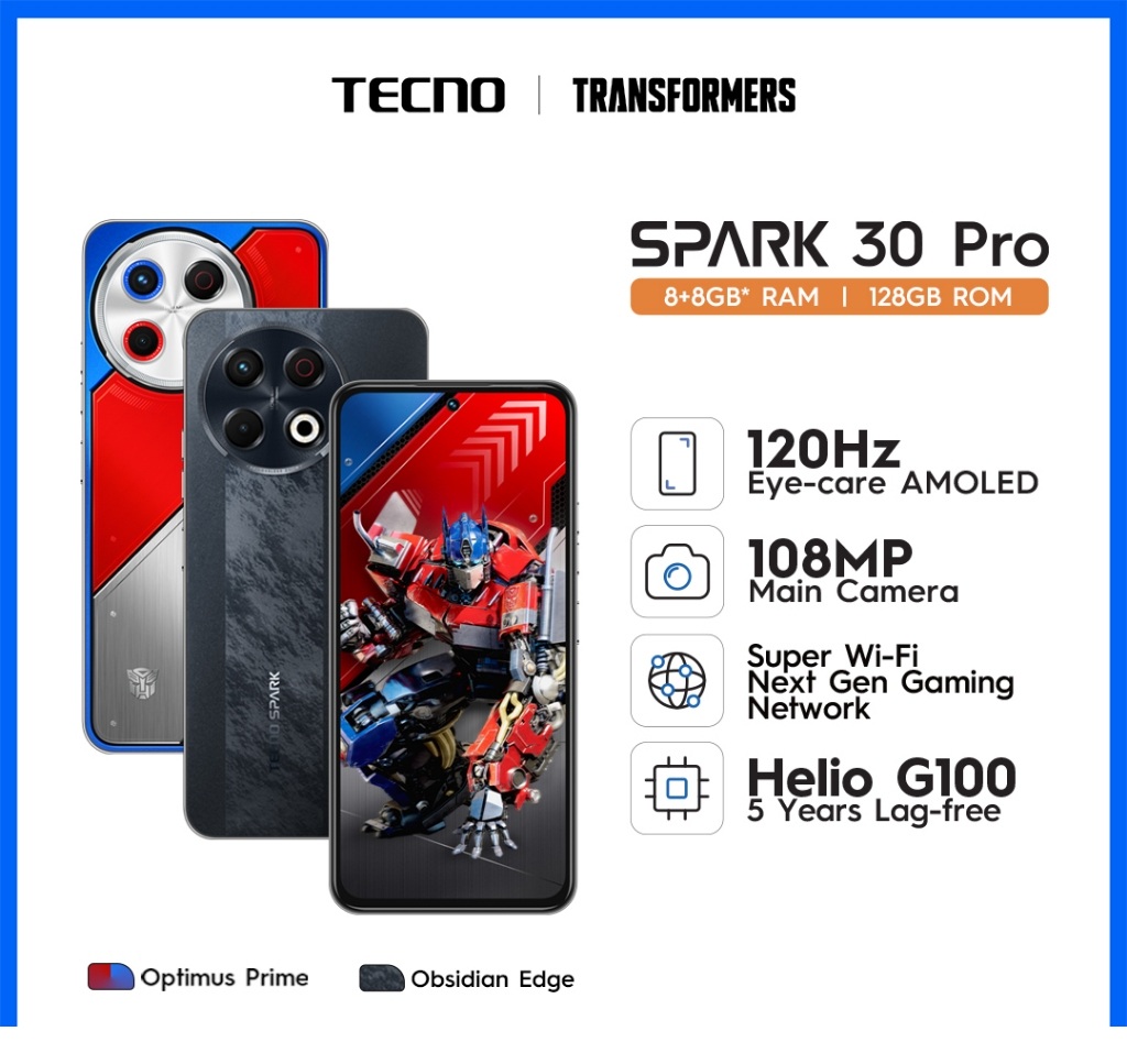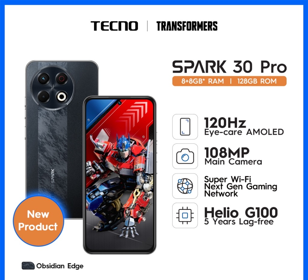 [Mall] TECNO SPARK 30 Pro - 8+8GB*+128GB, 120Hz Eye Care AMOLED Display, 108MP Main Camera, Super Wi-fi, 5.000