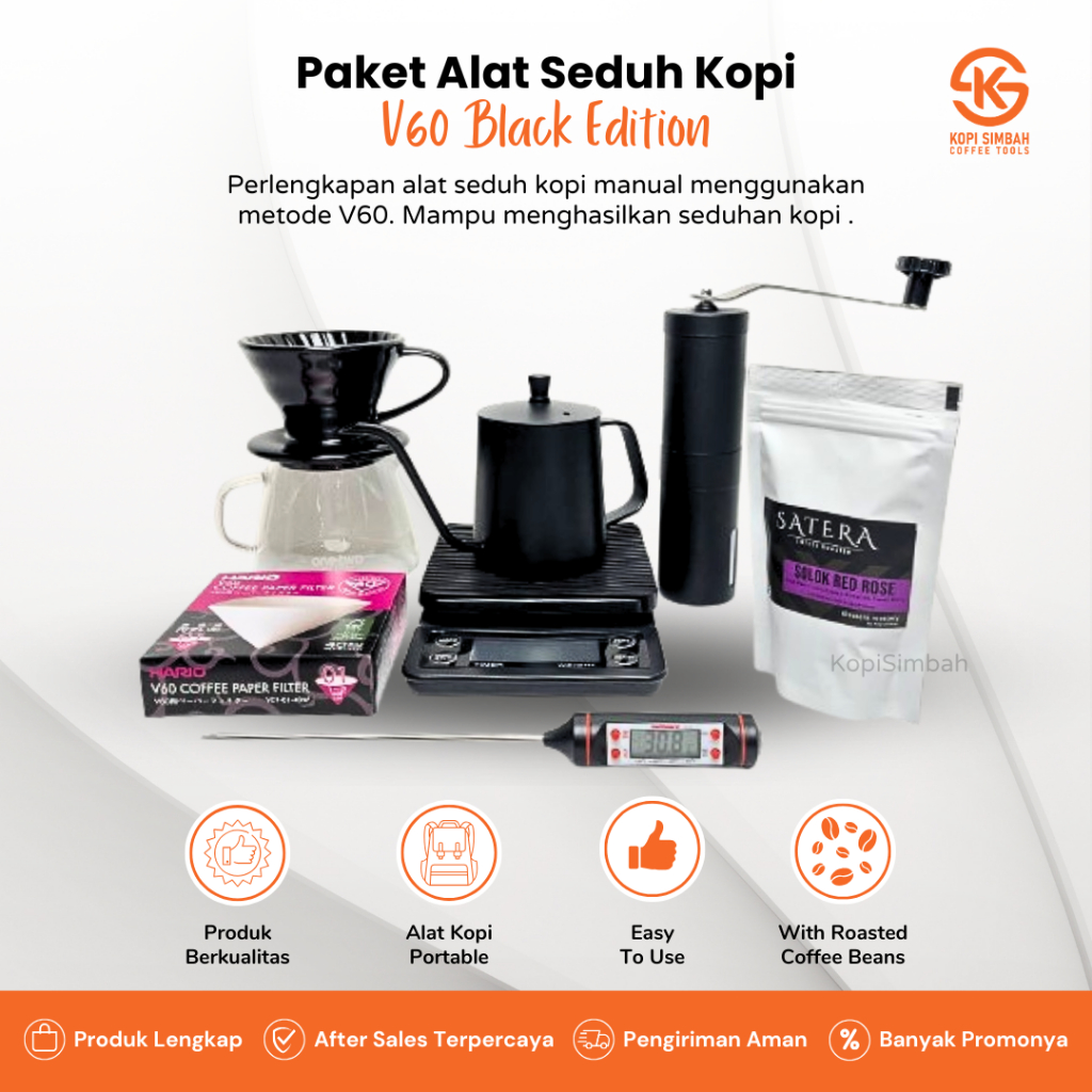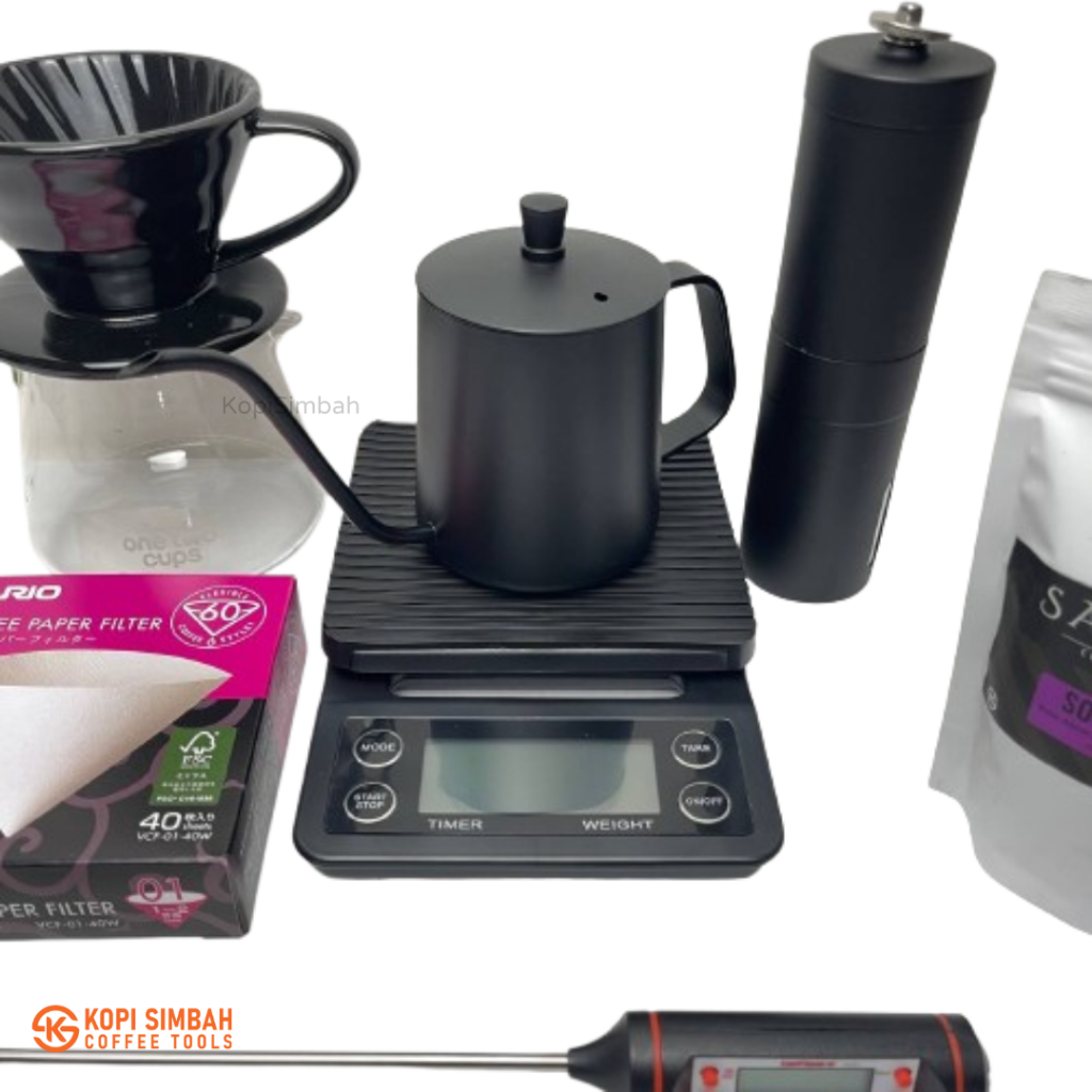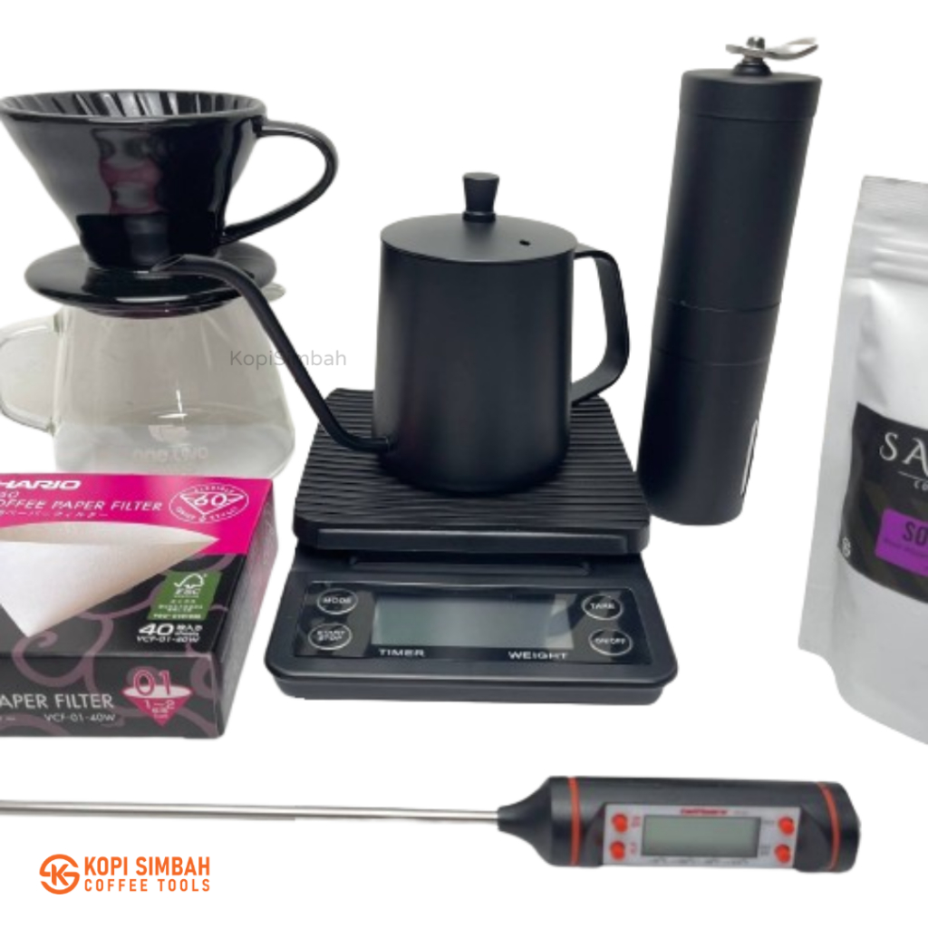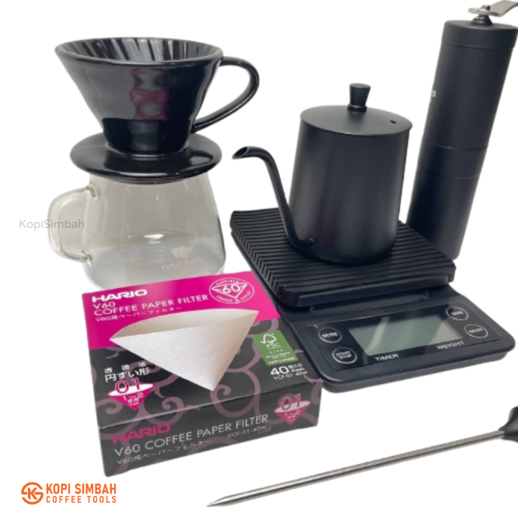 Paket Seduh V60 Black Edition Alat Seduh Pembuat Kopi V 60 Home Coffee Dripper Tools Manual Brew