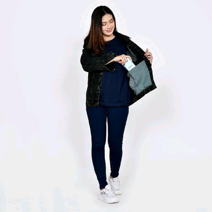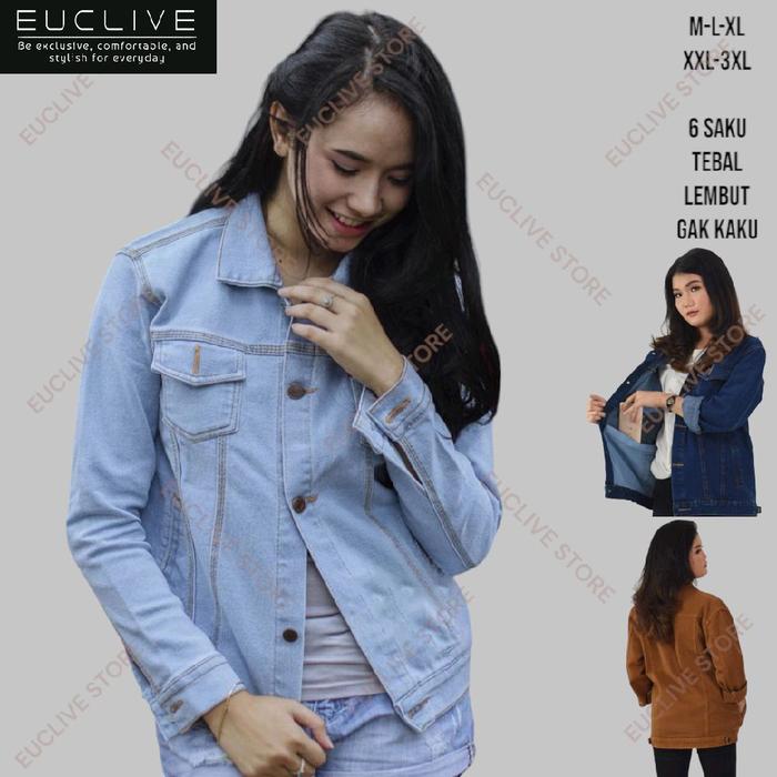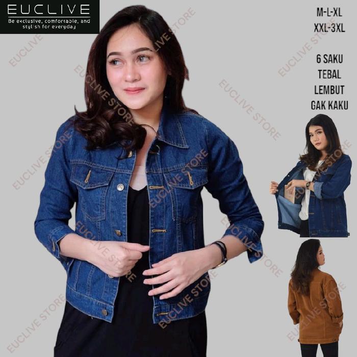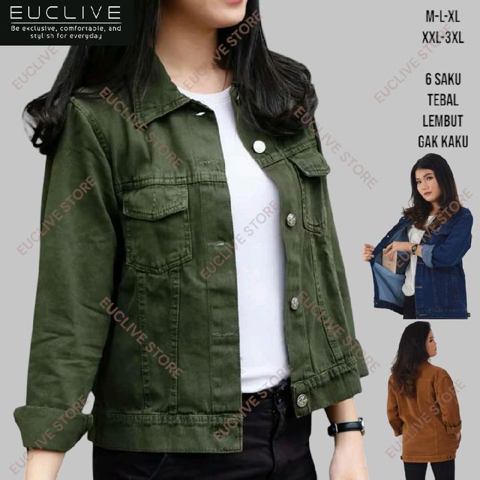Jaket Jeans Denim Premium Wanita All Size - Jumbo Army Jaket Adem Nyaman Tebal Jeans Kpop Oversize - Army, M