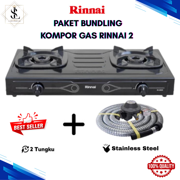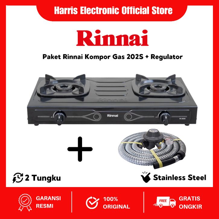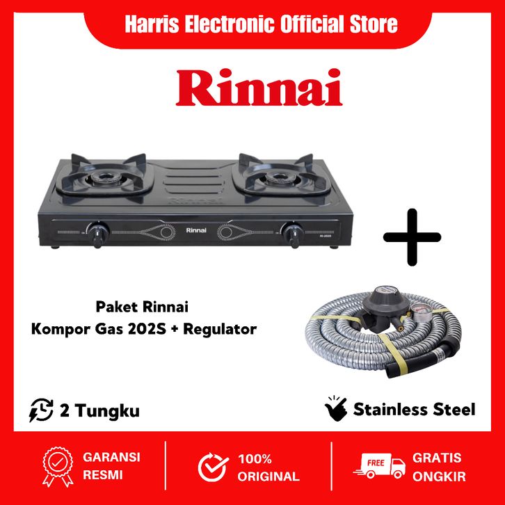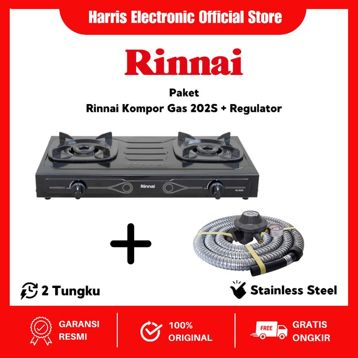 PAKET BUNDLING KOMPOR GAS RINNAI 2 TUNGKU RI 202S+RMS-206M SELANG REGULATOR GAS PORTABLE MIYAKO SNI TERMURAH FREE ONGKIR