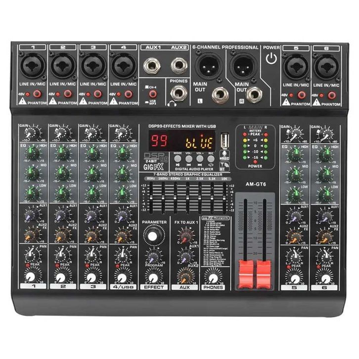 Mixer Audio Professional DSP 99 Effects Bluetooth USB 6 Channel