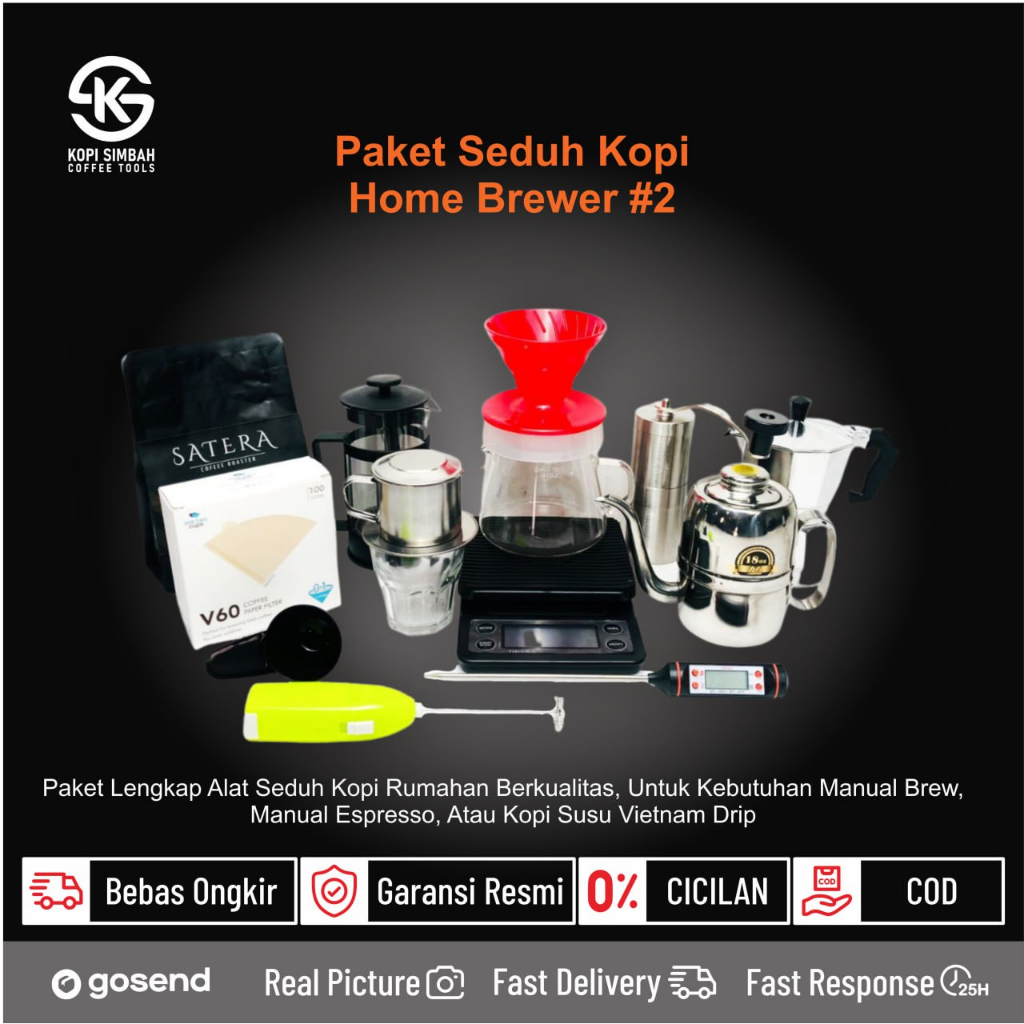 Paket Hemat HOME BREWER 2 Alat Seduh Pembuat Kopi Rumahan Manual Brew V60 Dripper Pour Over V 60