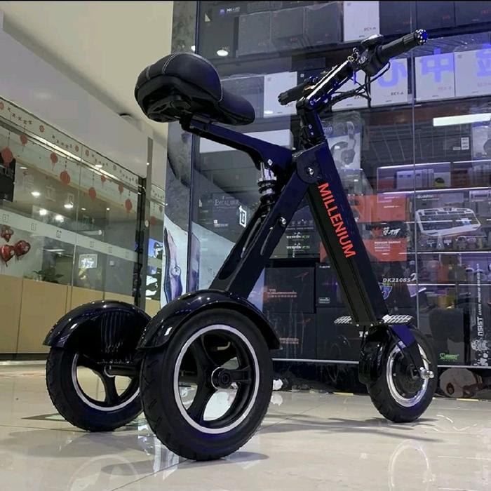 Skuter Listrik Lipat Millenium Roda 3 Scooter Alat Motor Outdoor Indoor - Hitam, All Size