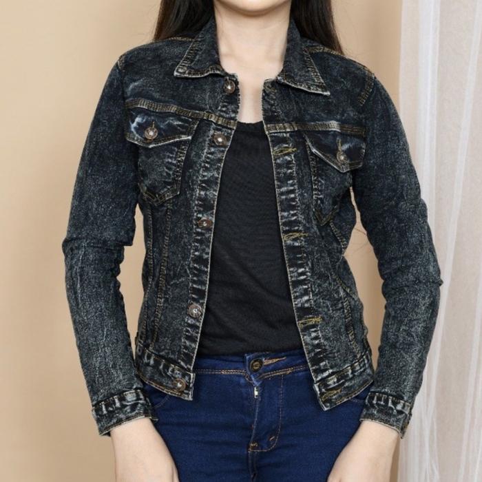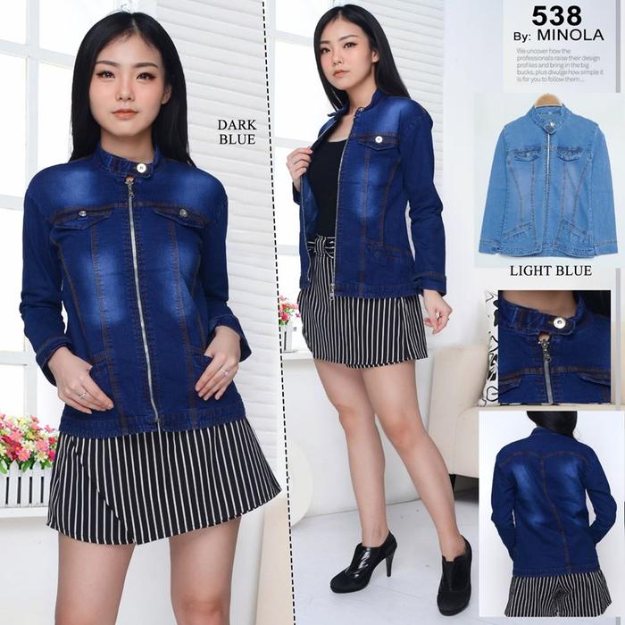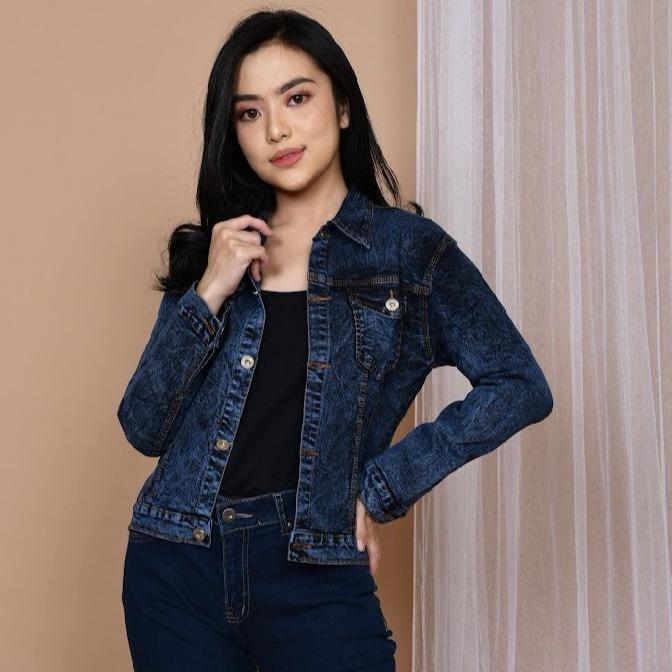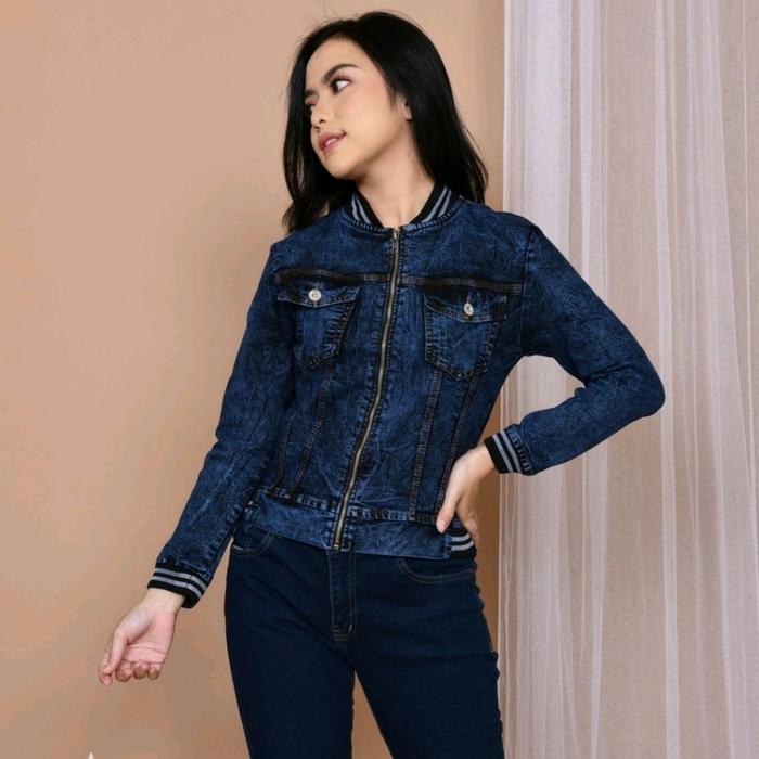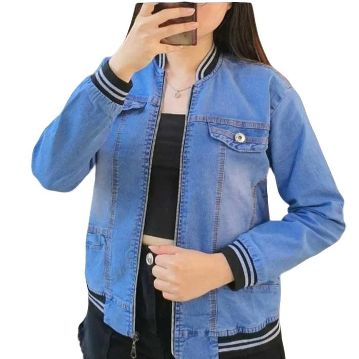 Minola Jaket Jeans Melar Atasan Wanita Denim Stretch Cewek Casual Santai Lengan Panjang - Bomber Aqua, M