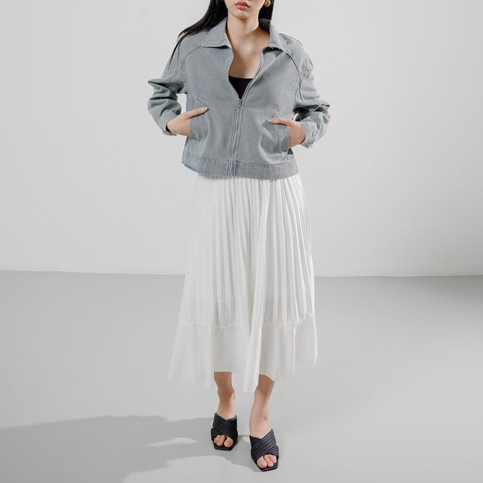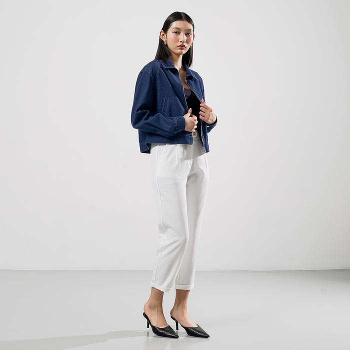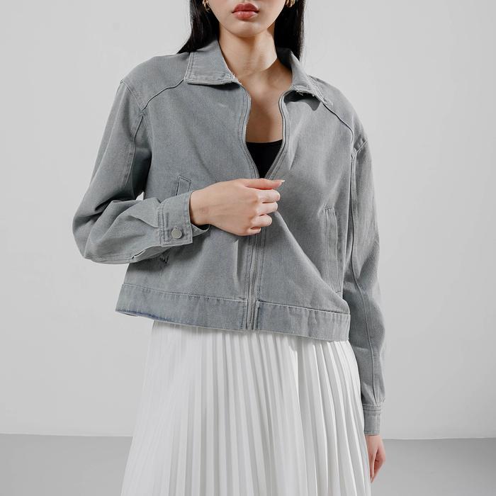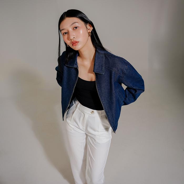 This Is April Jaket Zipper Jeans Wanita Crop Lengan Panjang Hijab Friendly West Outer Dark Denim & Light Denim (Restock)