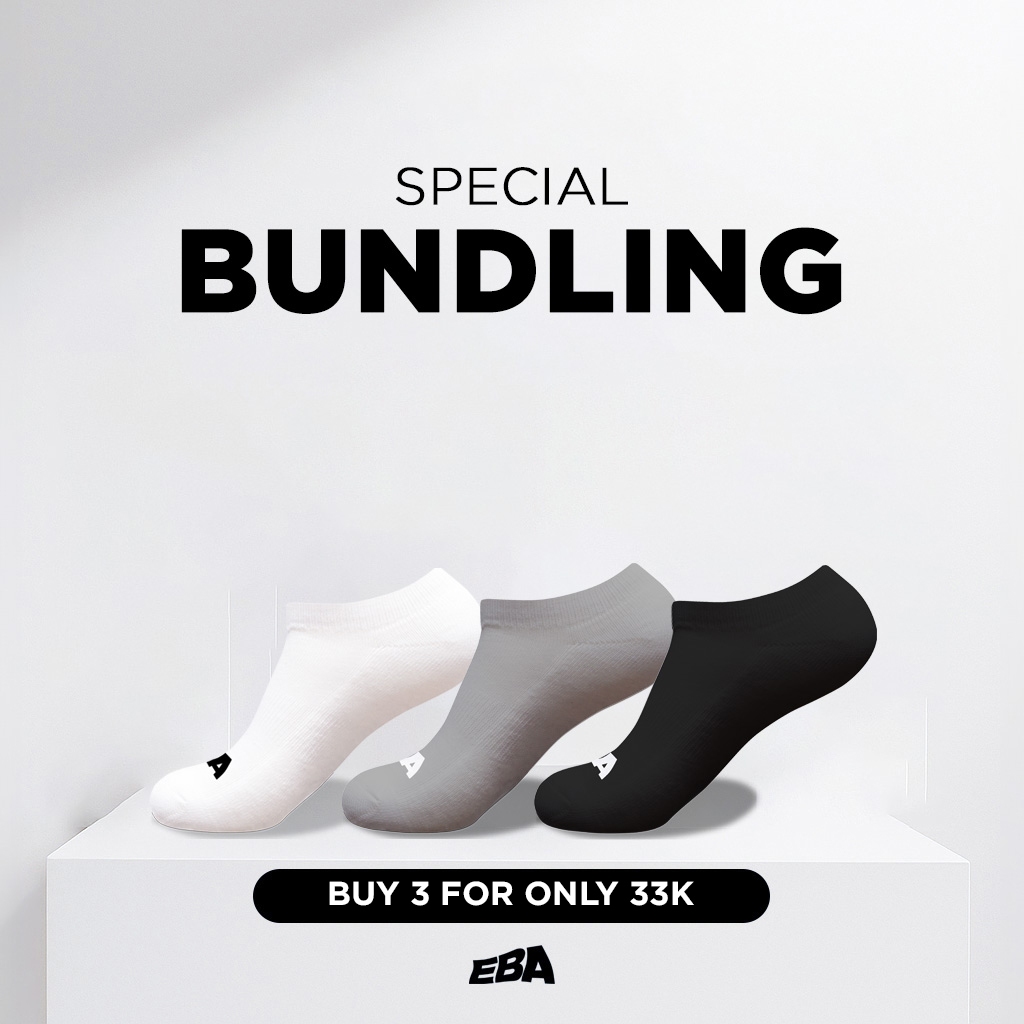 EBA LTD Paket 3 Pasang Kaos Kaki Polos Pendek Semata Kaki, Allsize Dewasa, Ankle Socks