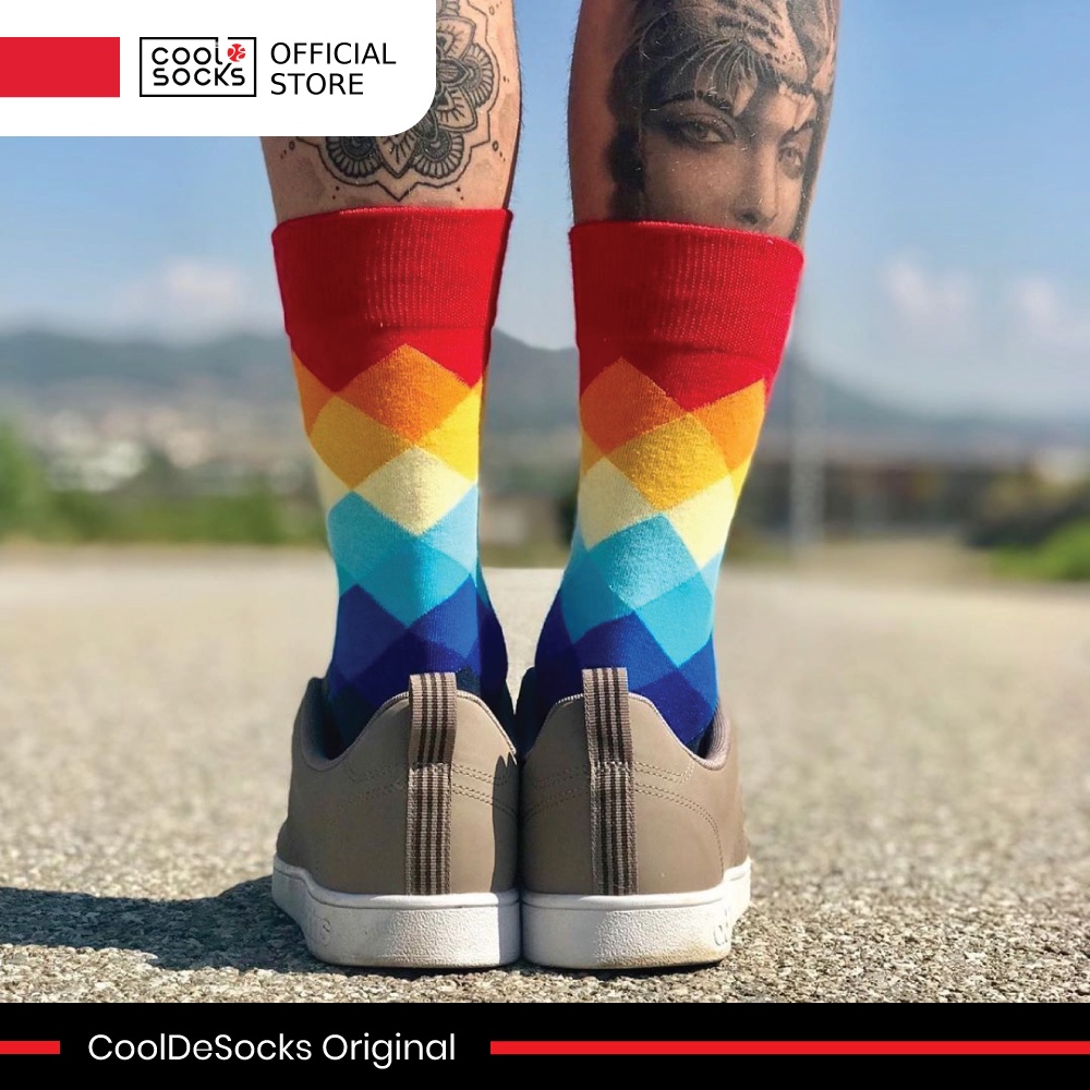 Kaos Kaki CoolDeSocks Original | Checkered - Rainbow Red