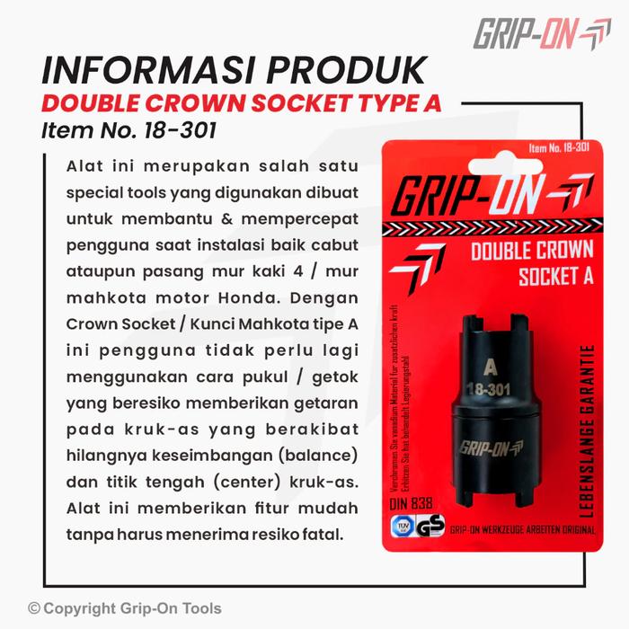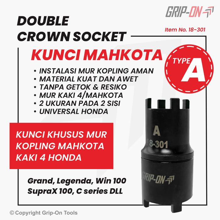 Grip-On Double Crown Socket Kunci Mahkota Ganda Mur Kopling - Type A