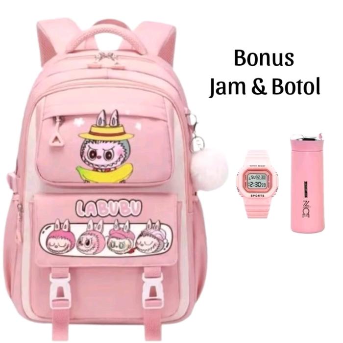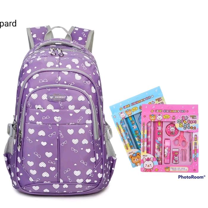 Tas Anak Sekolah Motif Love Gratis Alat Tulis Set Fashion Ransel - Orange
