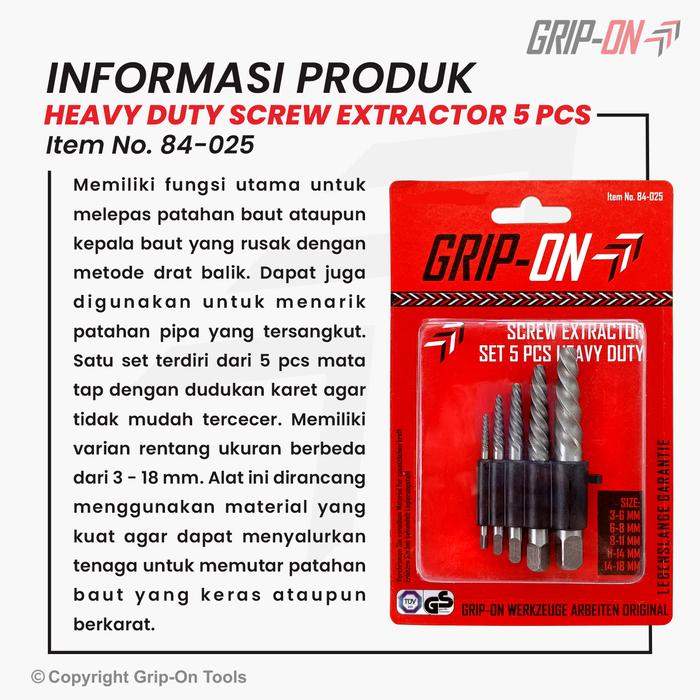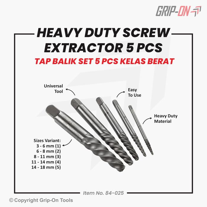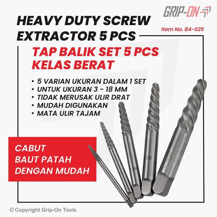 Grip-On Heavy Duty Screw Extractor Tap Balik Kelas Berat Set 5 Pcs