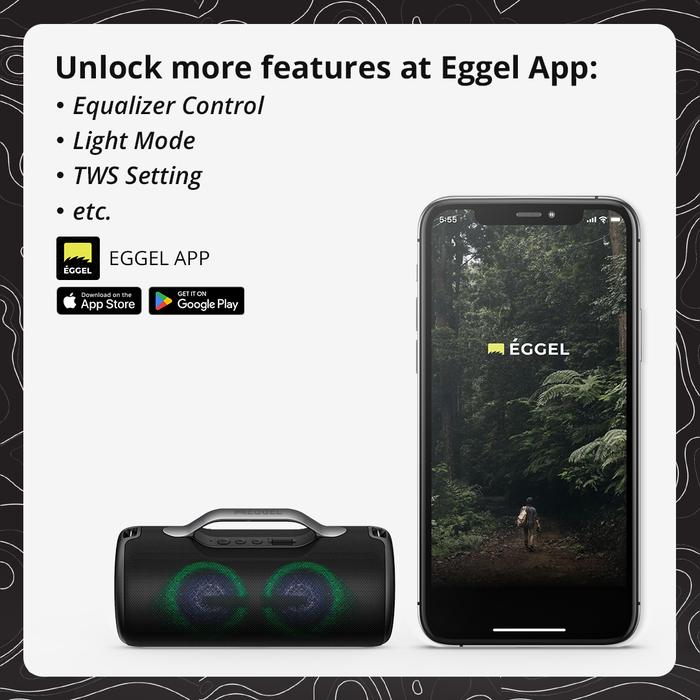 Eggel Elite Xl 2S Waterproof Portable Bluetooth Speaker With Rgb Light - Black