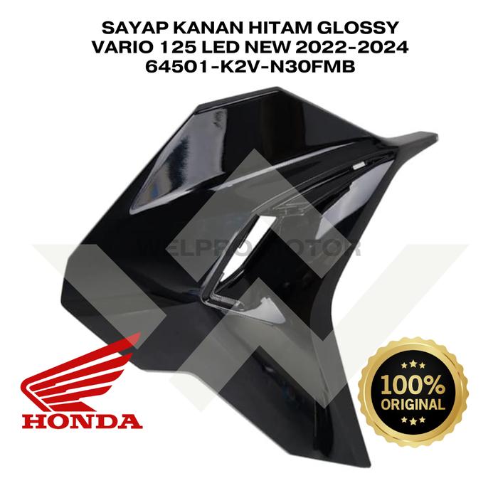 Paket Bodi Body Kasar Body Halus Vario 125 2022-2024 K2V Gen 2 Hitam Glossy Ori Honda Ahm - Sayap Kanan
