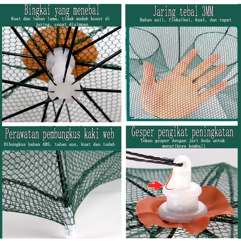 phoenix Perangkap Bubu Payung 4-16 Lubang Alat Jaring Pancing Jala Ikan Udang Kepiting Lele Lobster Sungai Laut u Fish T