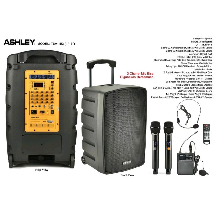 Speaker Portable 15 Inch ASHLEY TSA 153 | TSA153 600WATT Original Bluetooth USB 3 MIC
