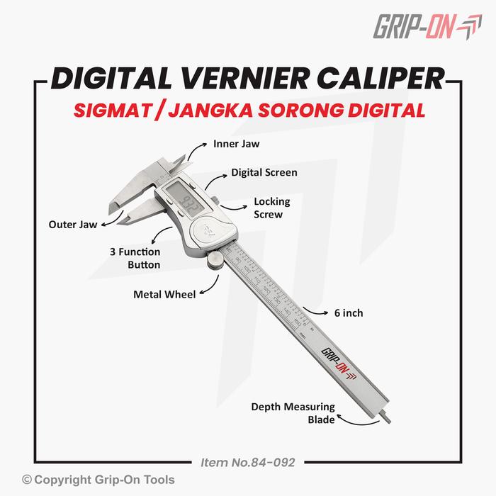 Grip-On Digital Vernier Caliper Sigmat / Jangka Sorong Digital 6 Inch