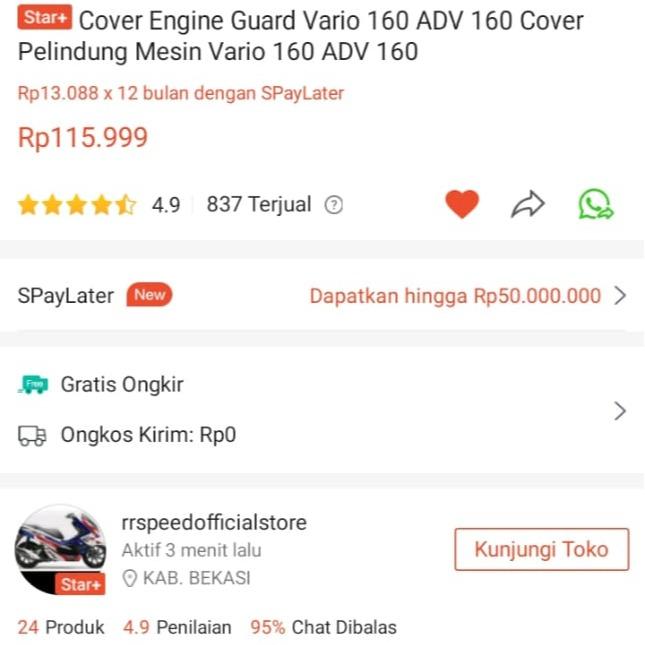 Engine Guard Vario 160 Abs Cbs Cover Pelindung Mesin Vario 160 Original Rrspeed Motorcycle - Stylo 160