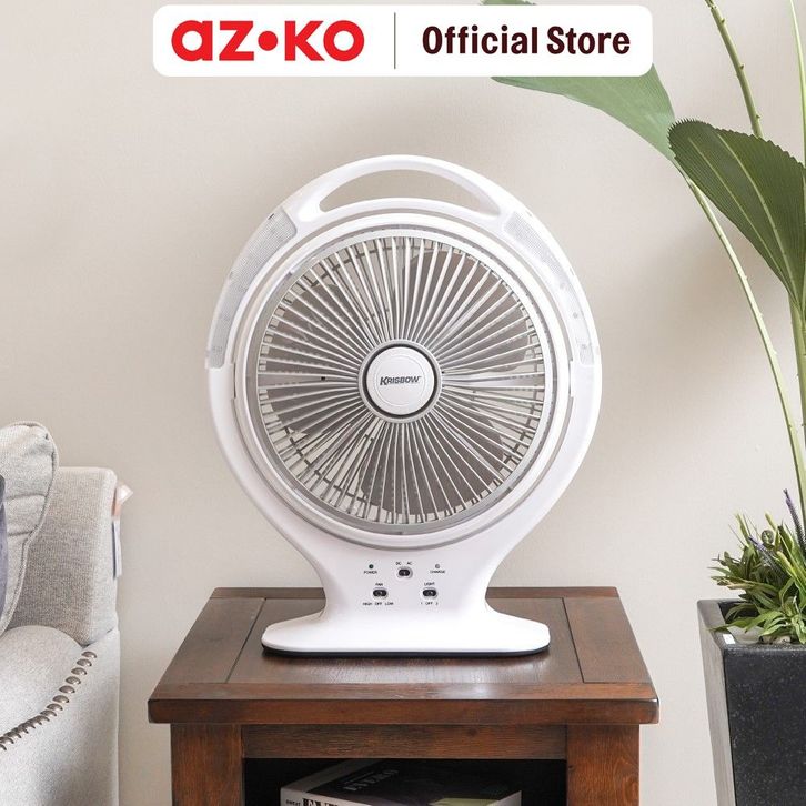 Azko Krisbow 14 Inci Kipas Angin Meja Dengan Lampu Rechargeable - Putih Desk Fan Penyejuk Ruangan Kipas Baling-Baling