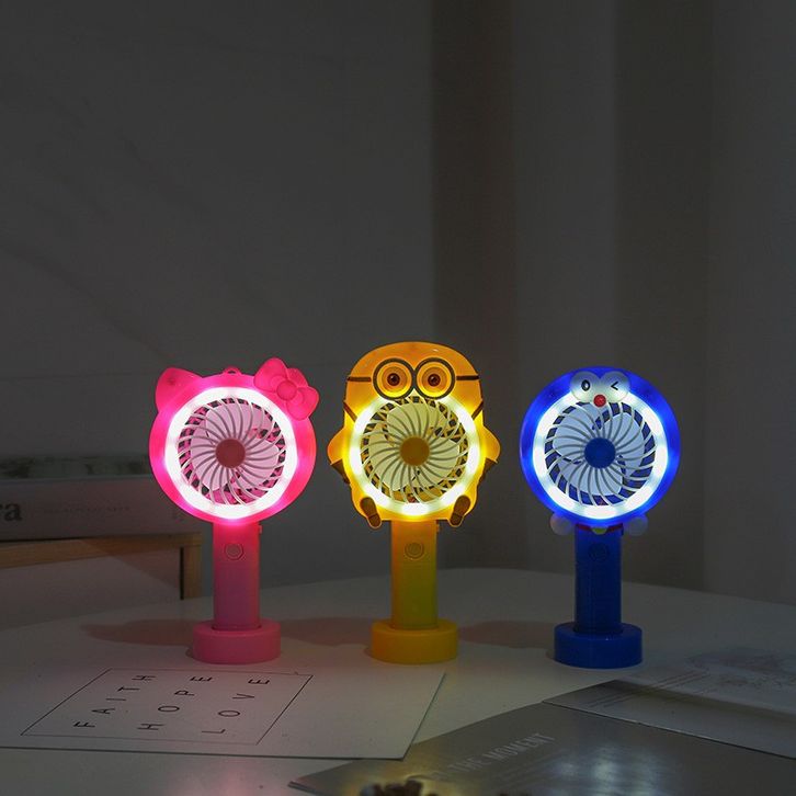Kipas Angin Mini Recharge Cas USB Kipas Karakter + Lampu LED/Kipas Angin Tangan Stand