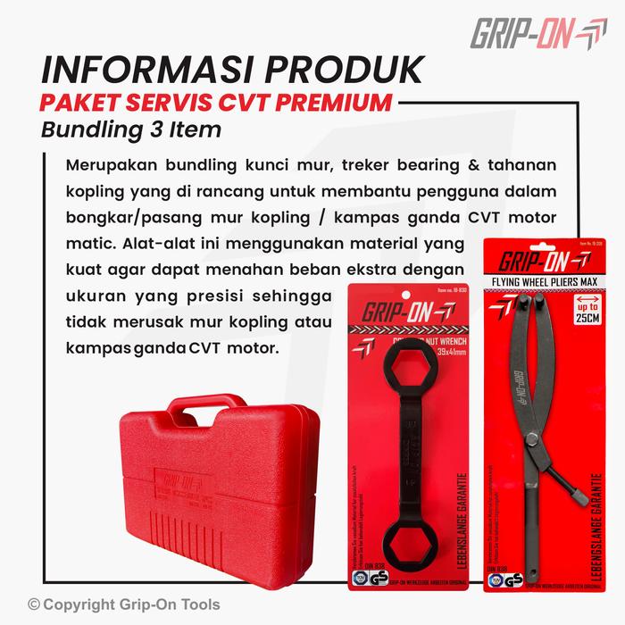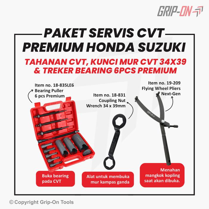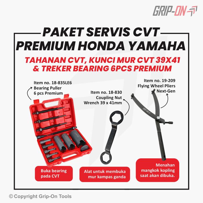 Grip-On Paket Service Cvt Bundling 3 Alat - Tahanan Cvt + Kunci Mur Cvt + Treker Bearing 6 Pcs Premium Untuk Honda Yamah