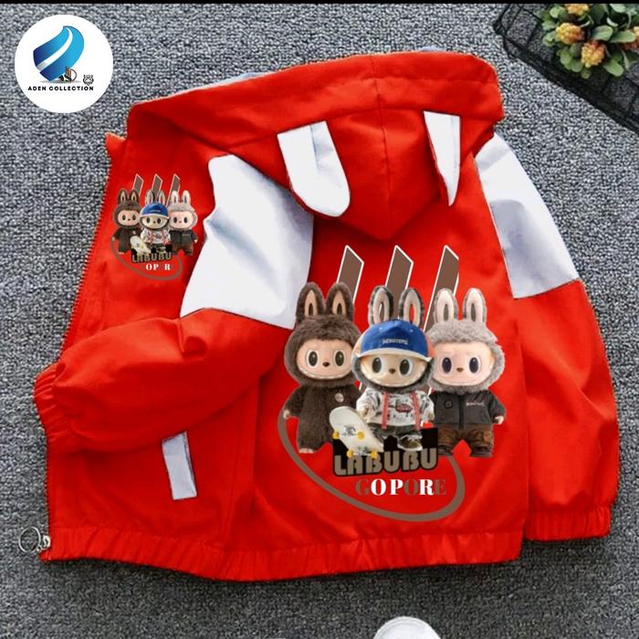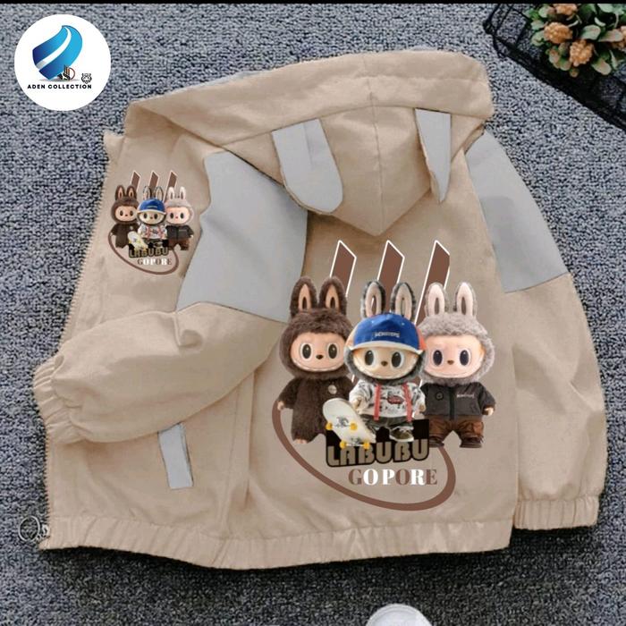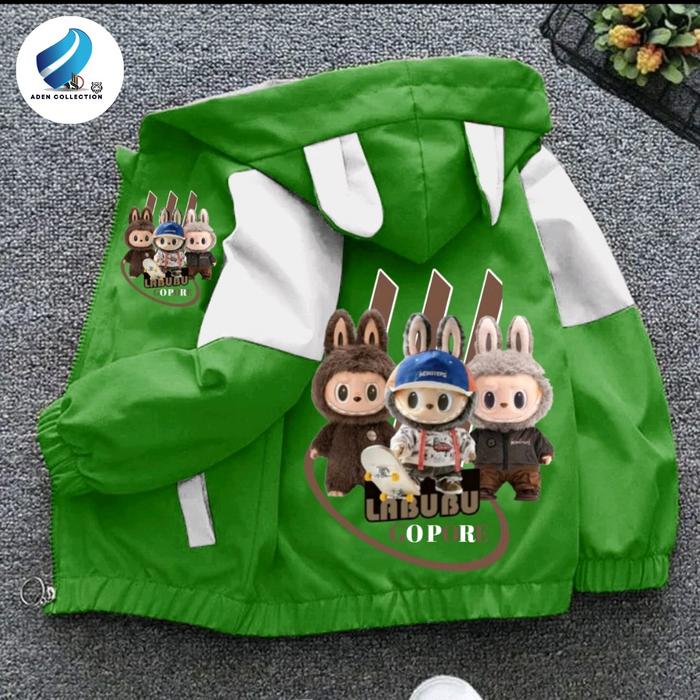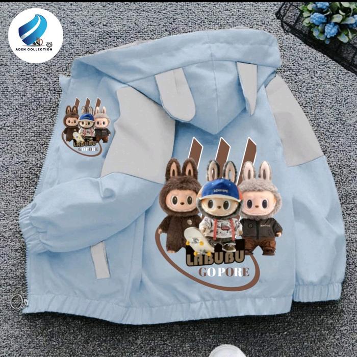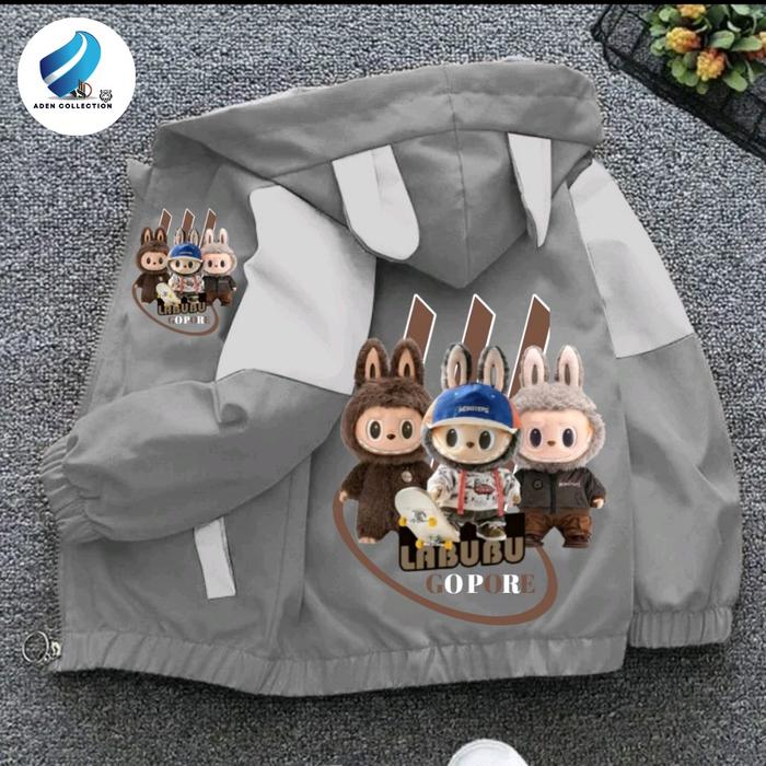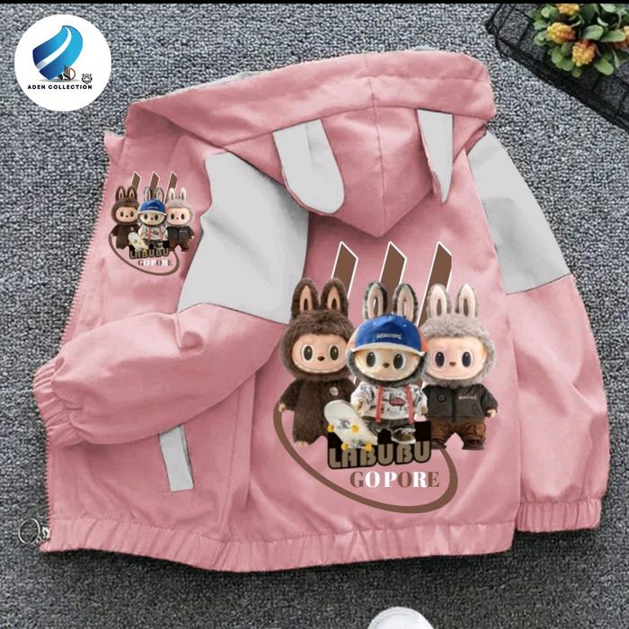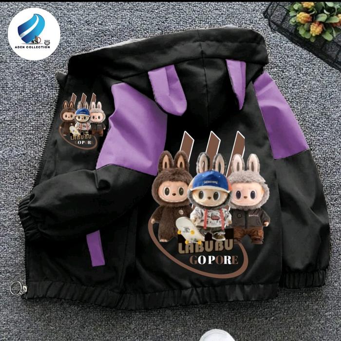 Jaket Anak Perempuan Dan Laki Laki Kombinasi Waterproop Gambar Labubu Kualitas Premium Fashion - Hitam Ungu, S