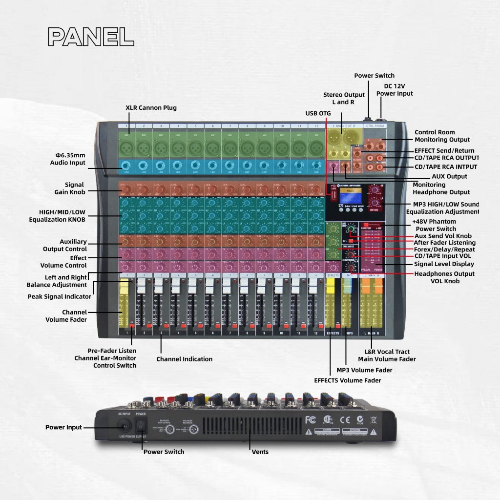 MOREFAND AUDIO MIXER CT6/CT8/CT12 SBLUETOOTH,USB,RECORD,SOUND CARDREVERB Mixer audio saluran