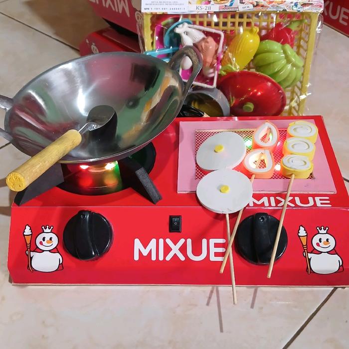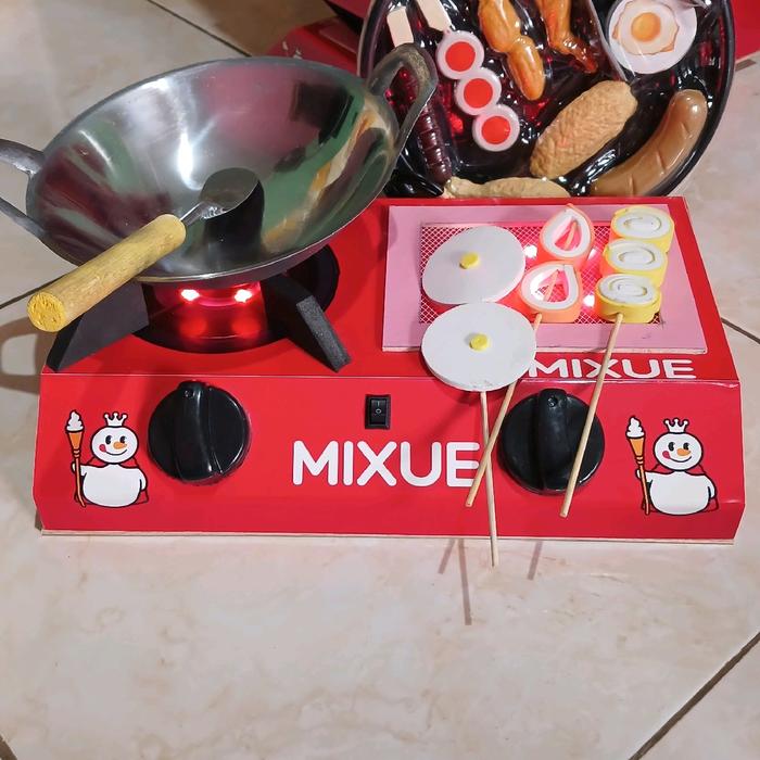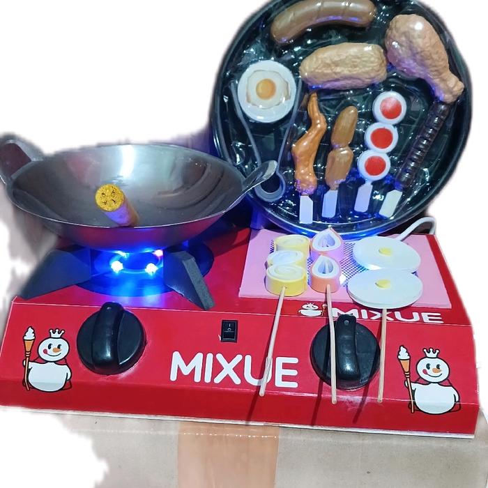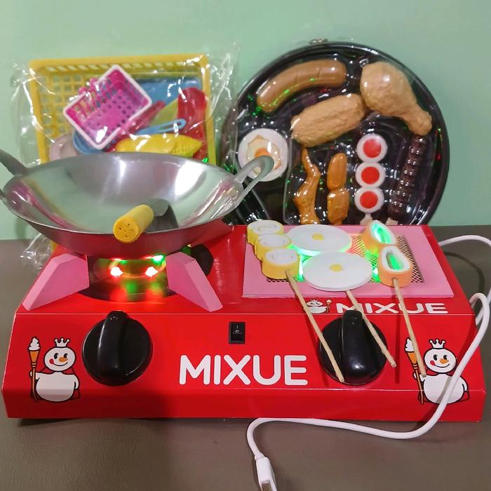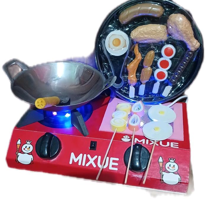Kompor Mainan Led Bisa Cas / Mainan Masak Masakan Edukasi Anak - Mixue Wajan Sutil + Sate + Foodcourt