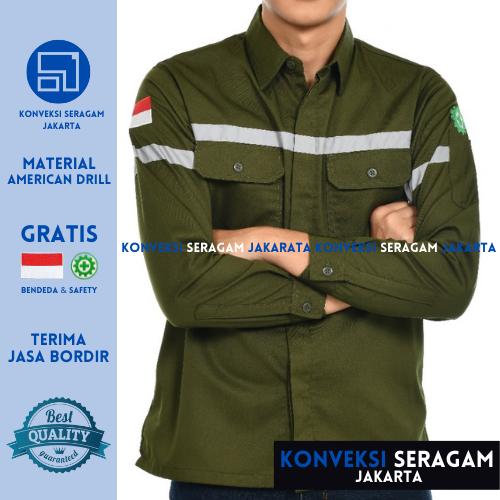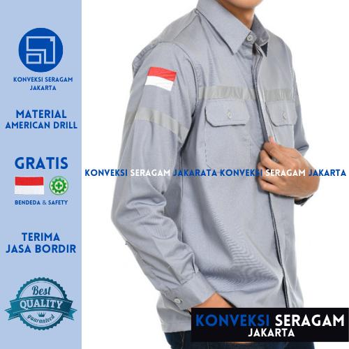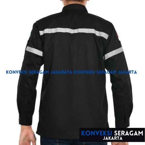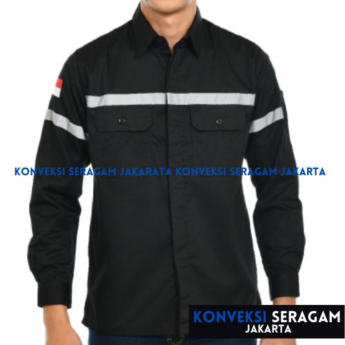Baju Kemeja Seragam Kerja Wearpack Werpak Proyek Safety Hitam Bordir - Putih, M