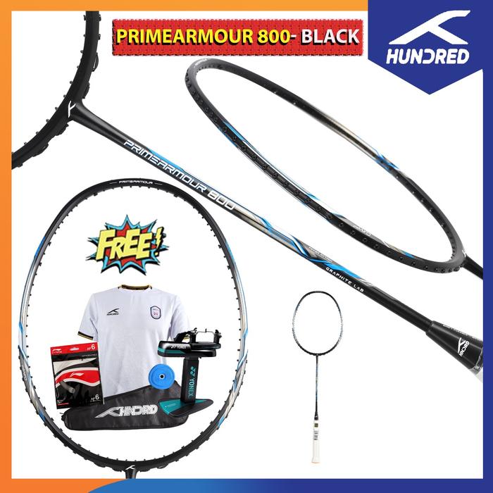 Hundred Raket Primearmour 800 Raket Badminton Original - Pkt Ap6, Black