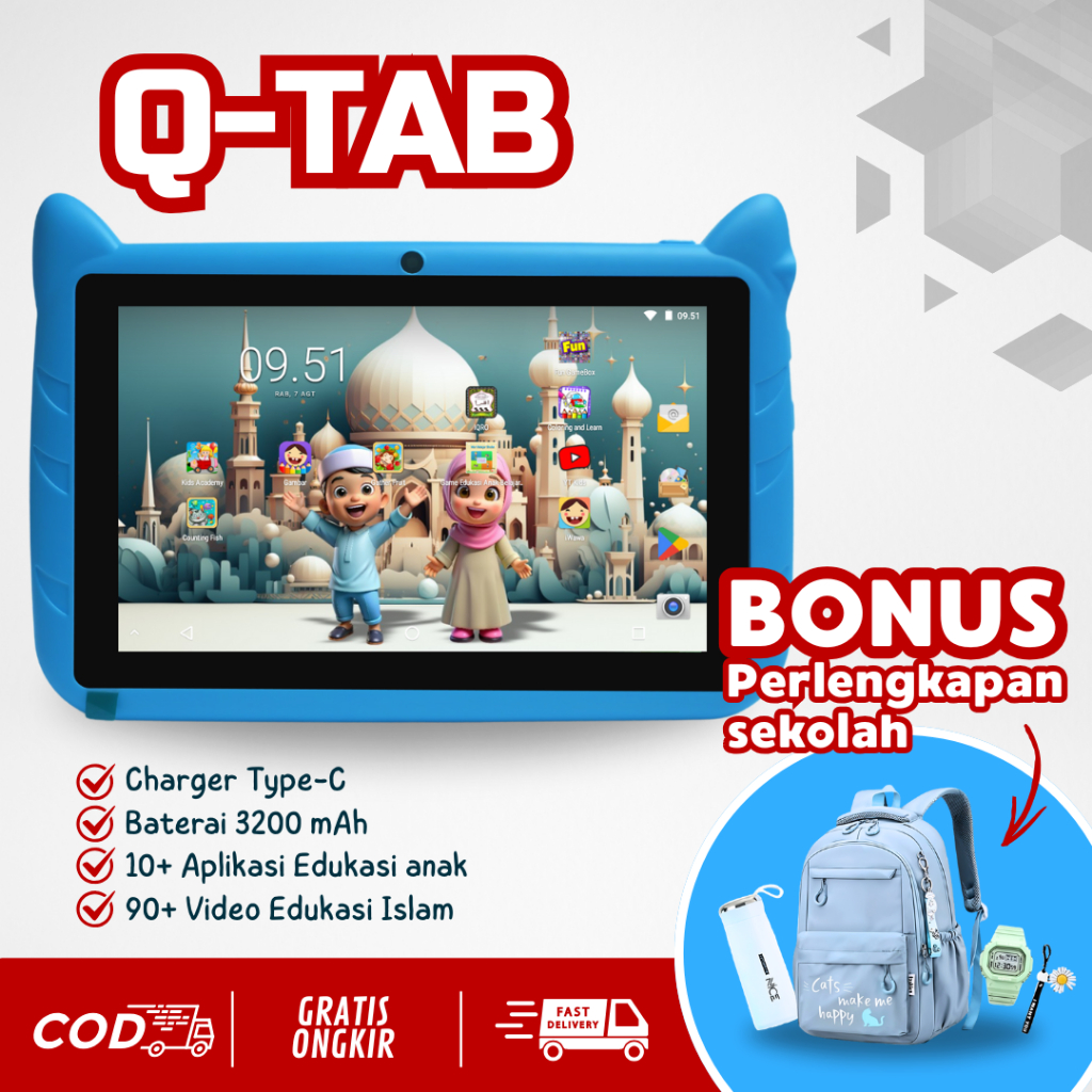 [Star]Garansi Resmi (Q-TAB) QURAN TABLET ANDROID ANAK BELAJAR 3-11 TAHUN KAPASITAS 4/64GB