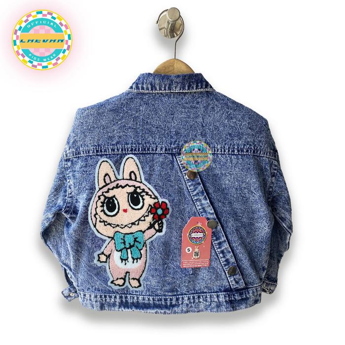 Jaket Oversize Patch Bordir Karakter Anak Usia 2-7 Th - Labubu Cool, Size S = 2-3 Tahun