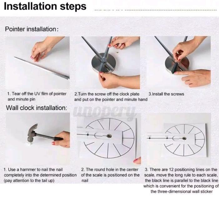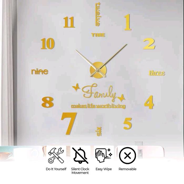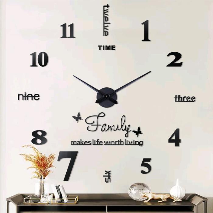 Jam Dinding Jumbo 80-150Cm Diy Dekorasi Kamar Aesthetic Hiasan Acrylic - Angka Black