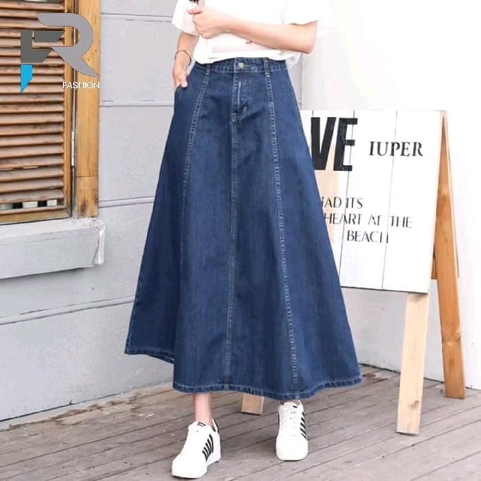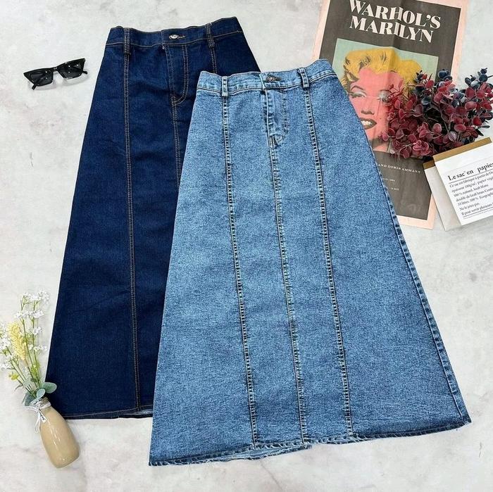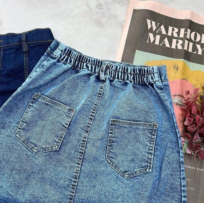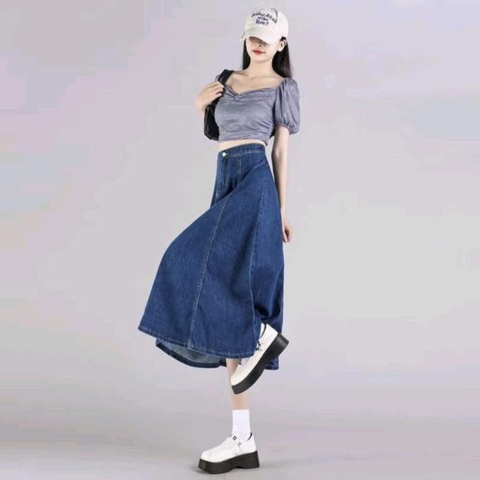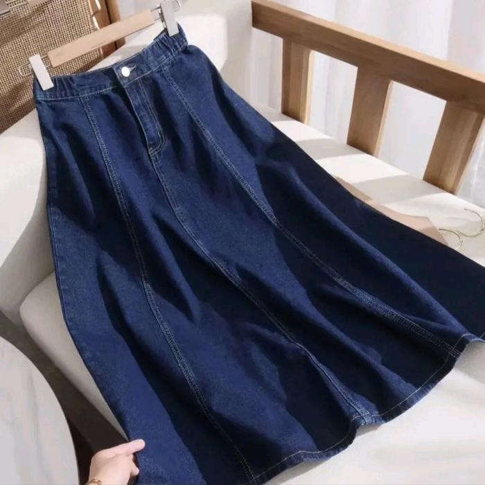 Jiso Rok Jeans Wanita Highwaist A-Linen Korean Style 7/8 Denim Karet Belah Belakang Panjang Standar - Drak Blue, Standar