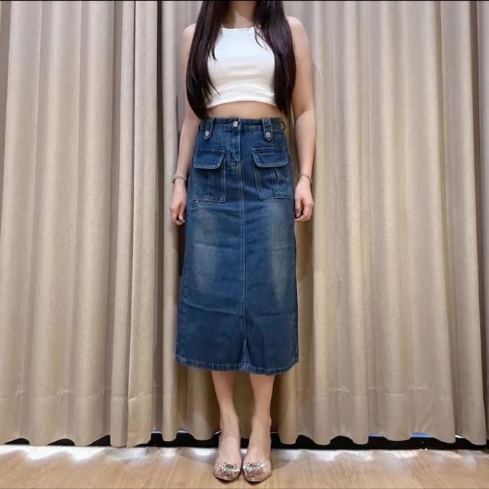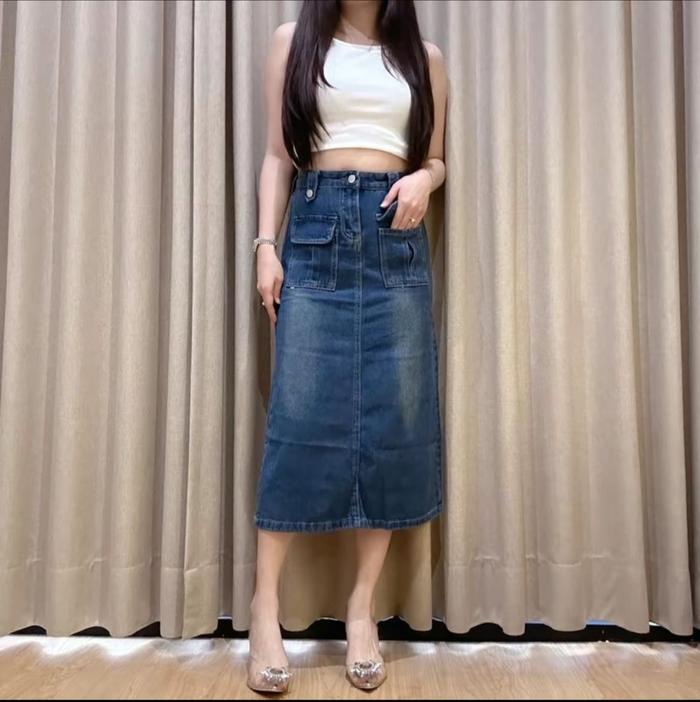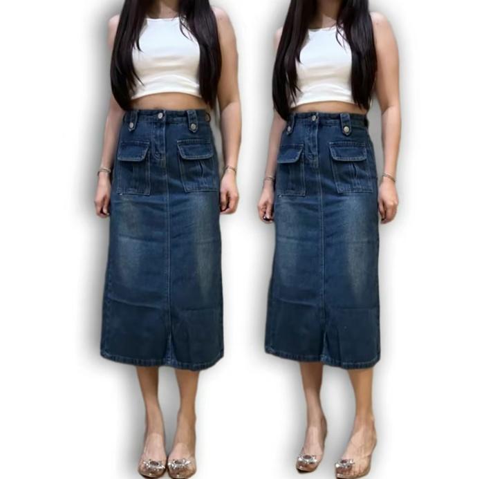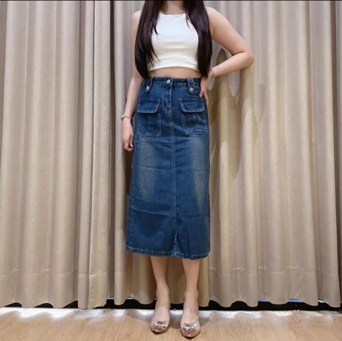 Rok Midi Sekoder Highwaist Wanita Polos Ripped Jeans Highwaist Korean Style Fashion Model Terbaru Cewek Dewasa Rok Jean