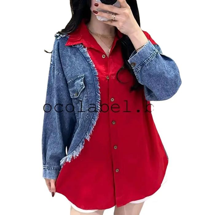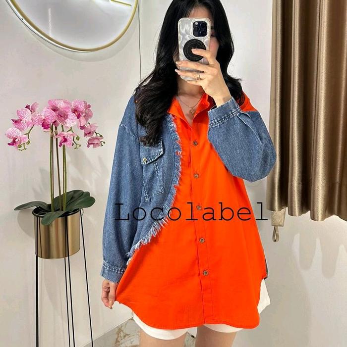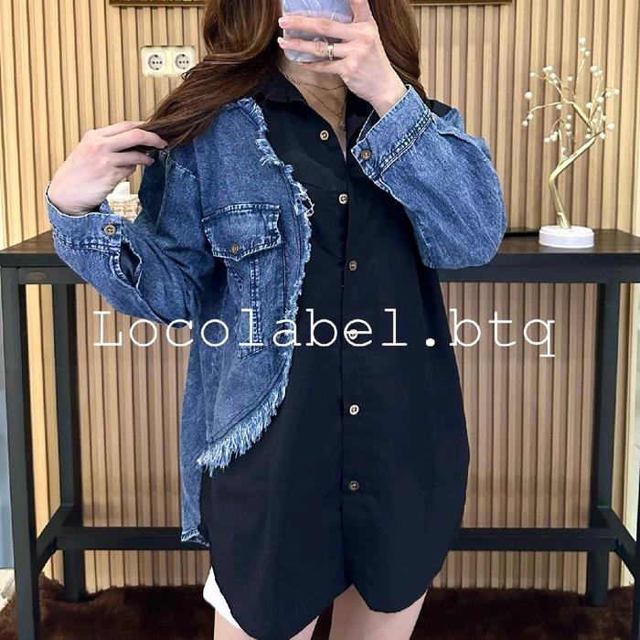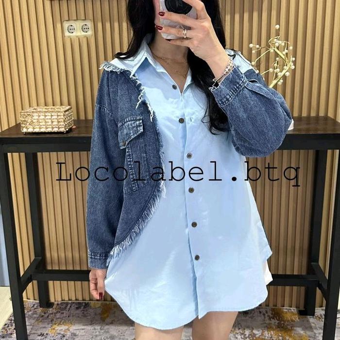 Locolabel - [Ld : 112-124Cm] Alice Denim Shirt Atasan Wanita Panjang Jeans - White, Standart Ld 112Cm