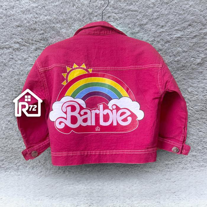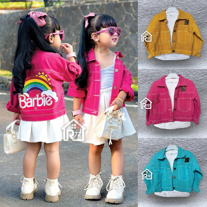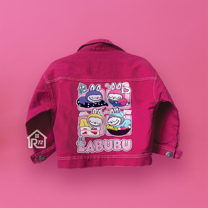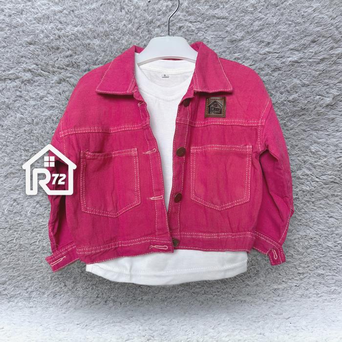 Jaket Jeans Stabilo Anak Perempuan Laki-Laki Lengan Panjang 2-9Th Oversize Bayi - Merah- Bubu Pink, L