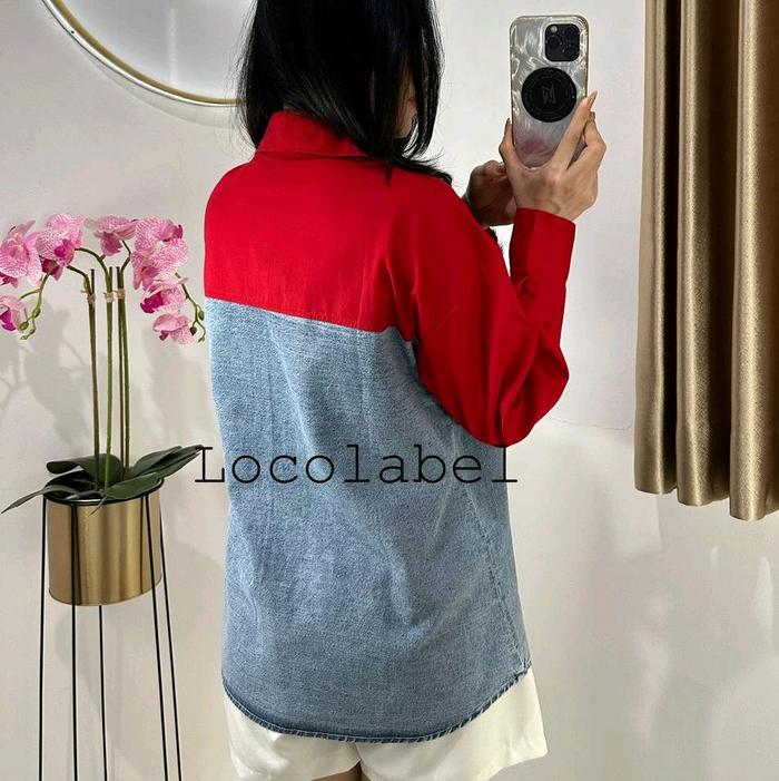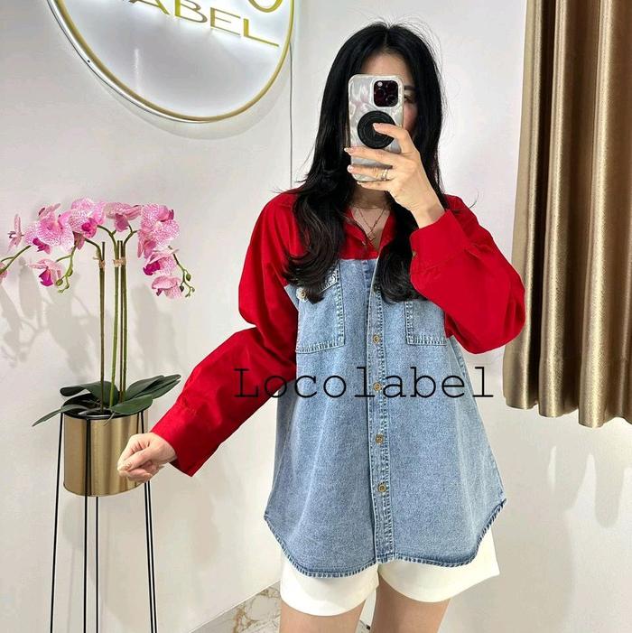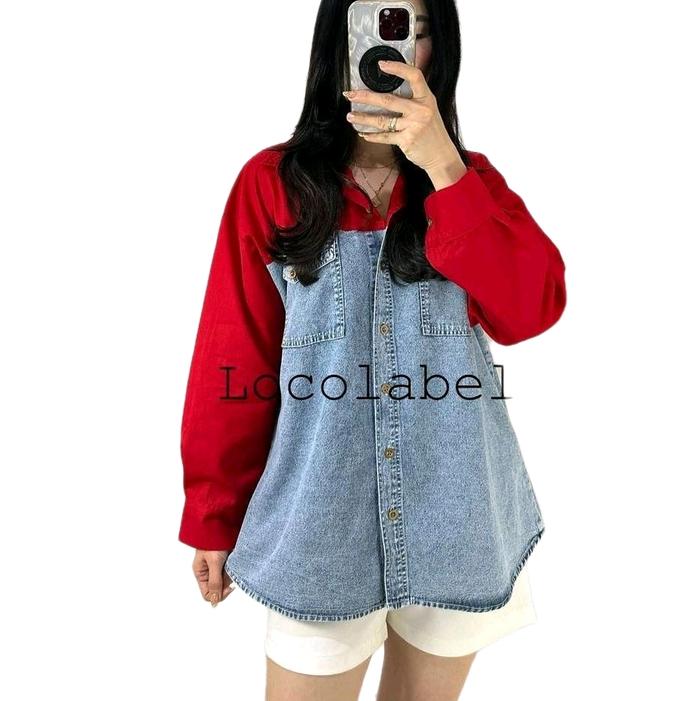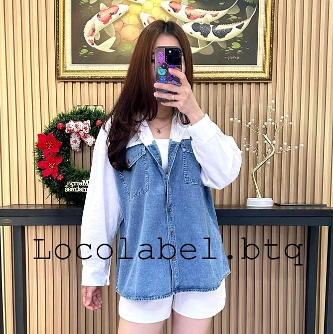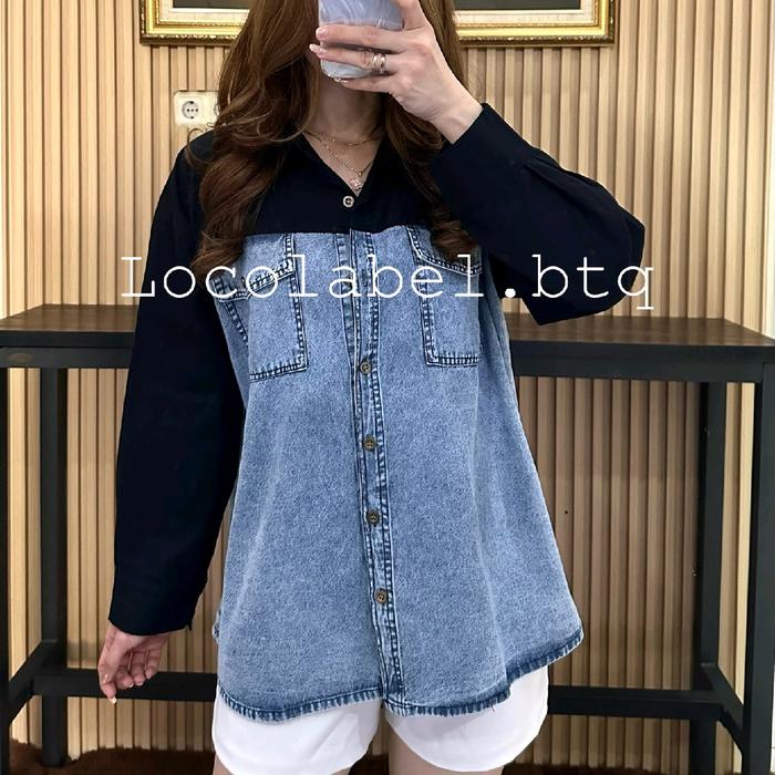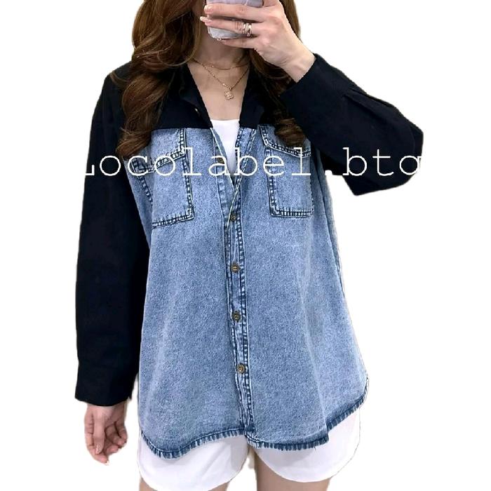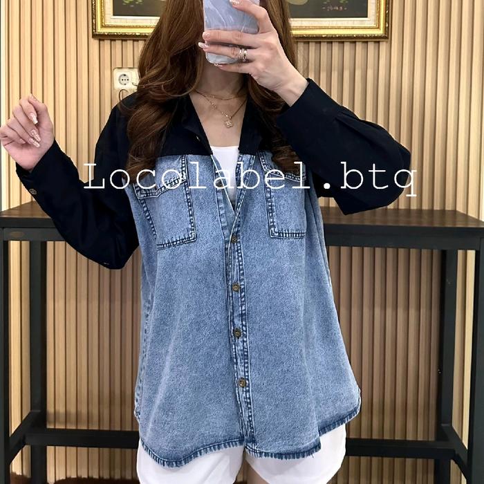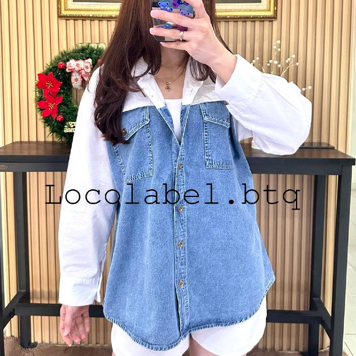 Locolabel - [Ld : 115-122Cm] Luna Denim Pocket Shirt Kemeja Tangan Panjang Wanita - White, Ld 115