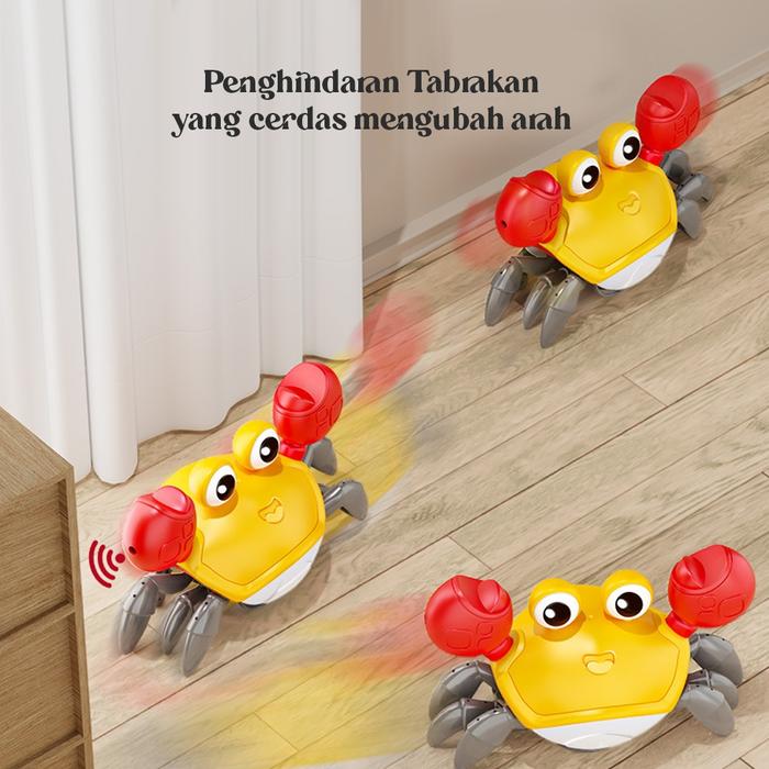 Ministar Mainan Edukasi Anak Hewan Lucu Kepiting Dengan Sensor Dan Musik Toys - Kuning-Merah