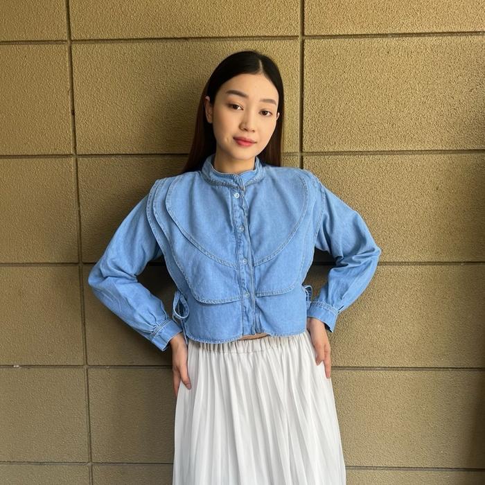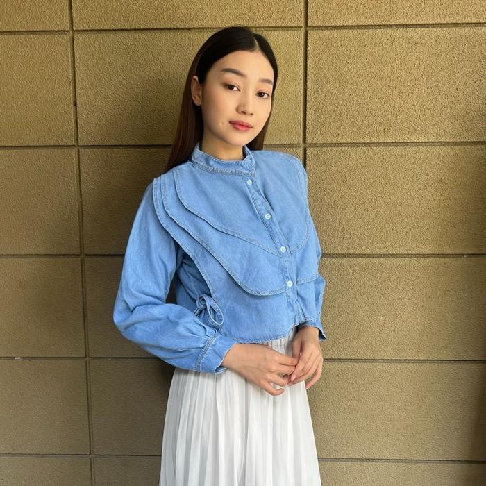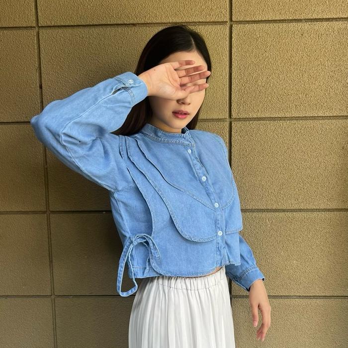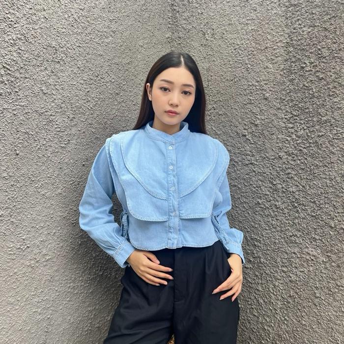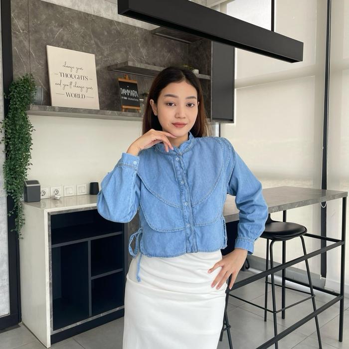 Diolin- Lily Long Sleeve - Baju Atasan Wanita Crop Top Jeans Kemeja Fashion Tangan Panjang