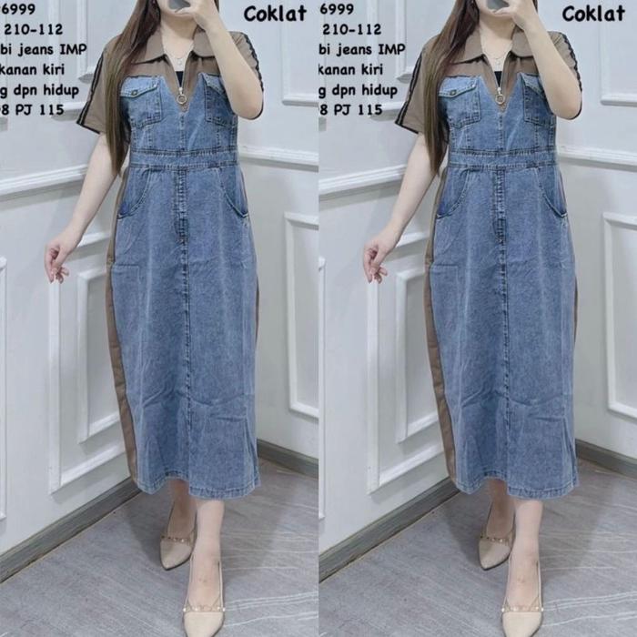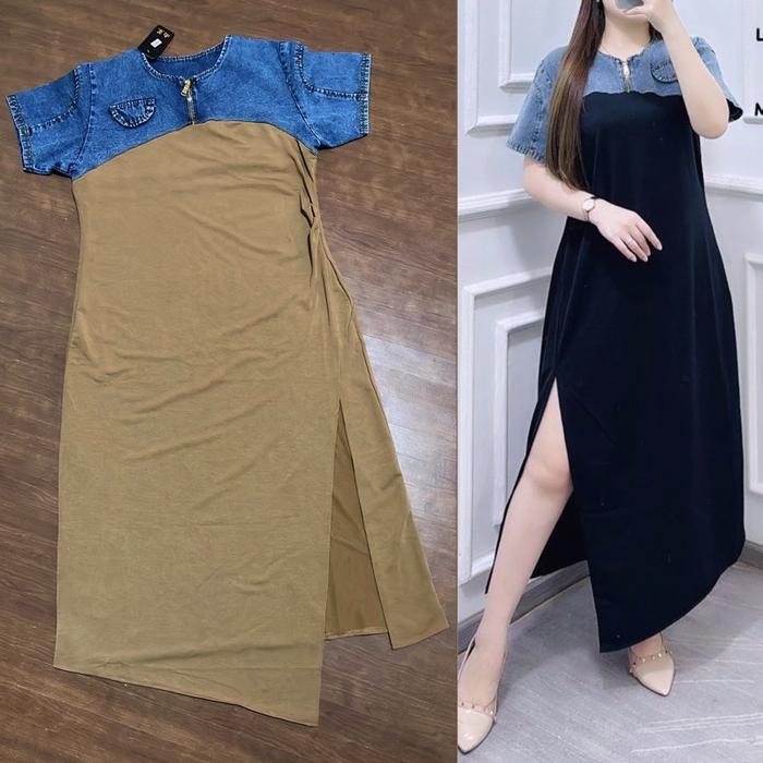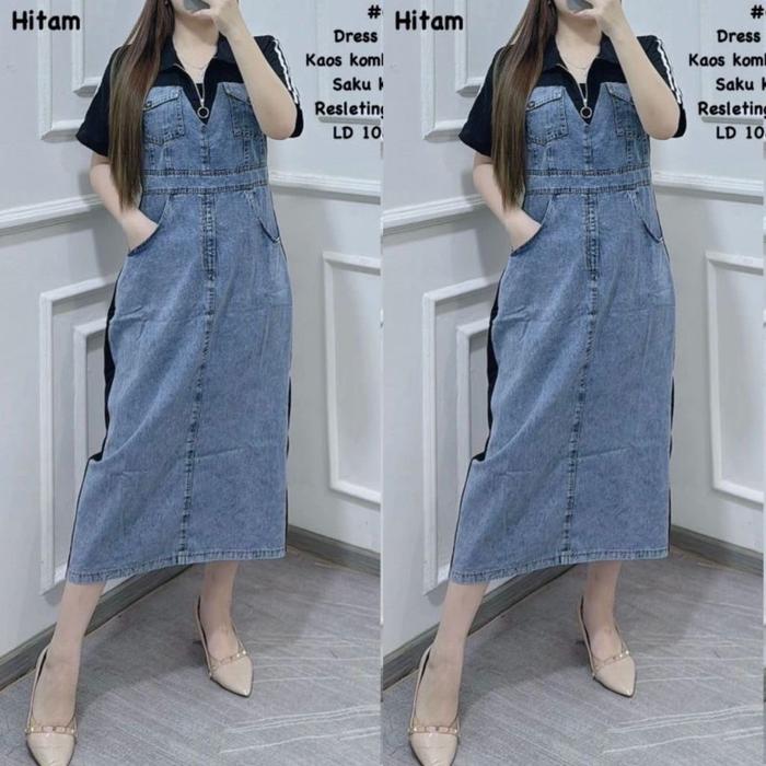 Dress Jeans Panjang Kombinasi Kaos Babyterry Import /Denim Jeans Kombinasi Kaos Bkk Fashion/Bisa - Model A