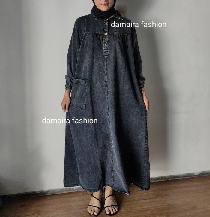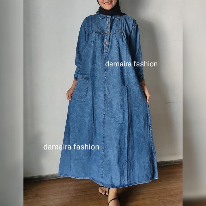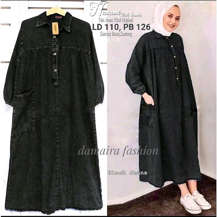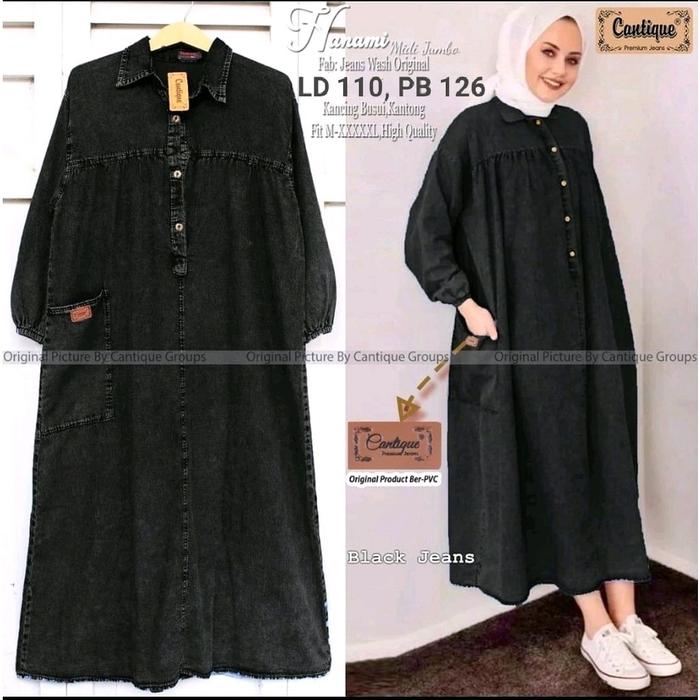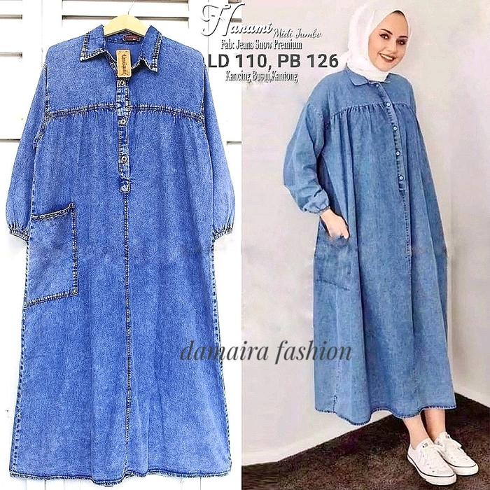 Hanami Midi Dress Jeans Tunik Gamis Jumbo Fit To Xxl Ld 110 Ld 120 Cm - Snow Blue, Ld 110